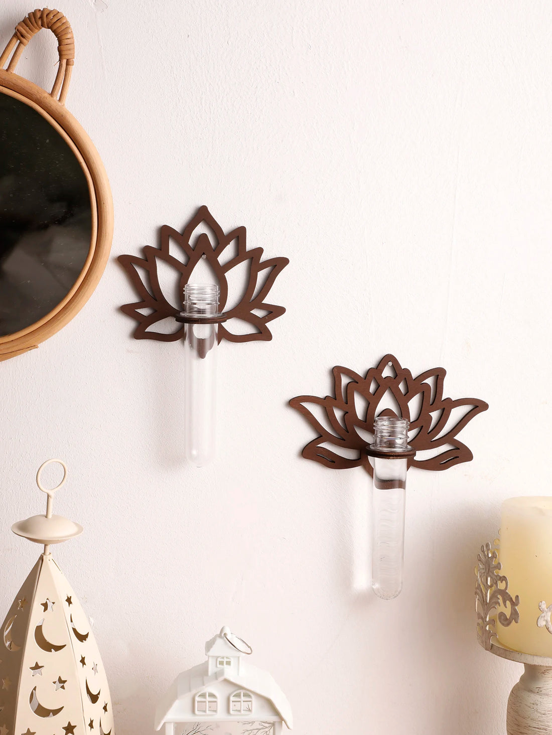 Lotus Shape Wall Planters for Indoor Plants Propagation Station Moon Wall Decor Art Vase Stand for Women Mom Plant Lovers Gift
