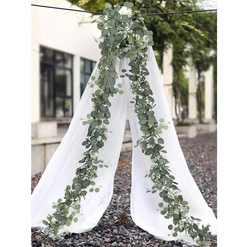 2pcs Artificial Eucalyptus Vine Plant Real Texture Fake Green Hanging Plant Wedding Courtyard Garden Home Party Wall Decoration