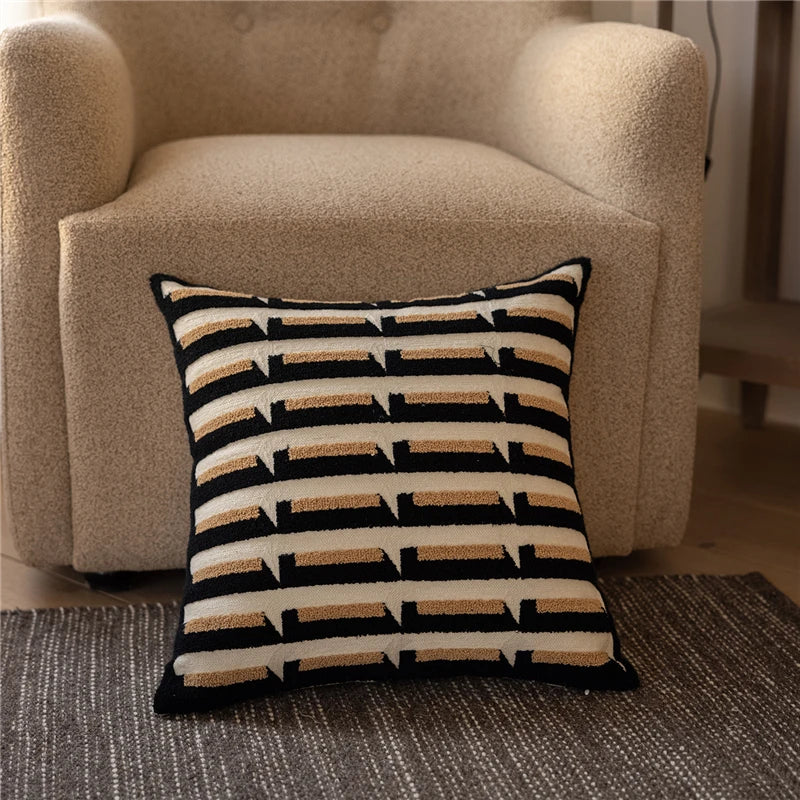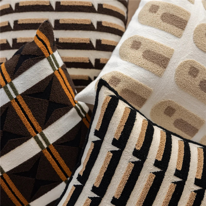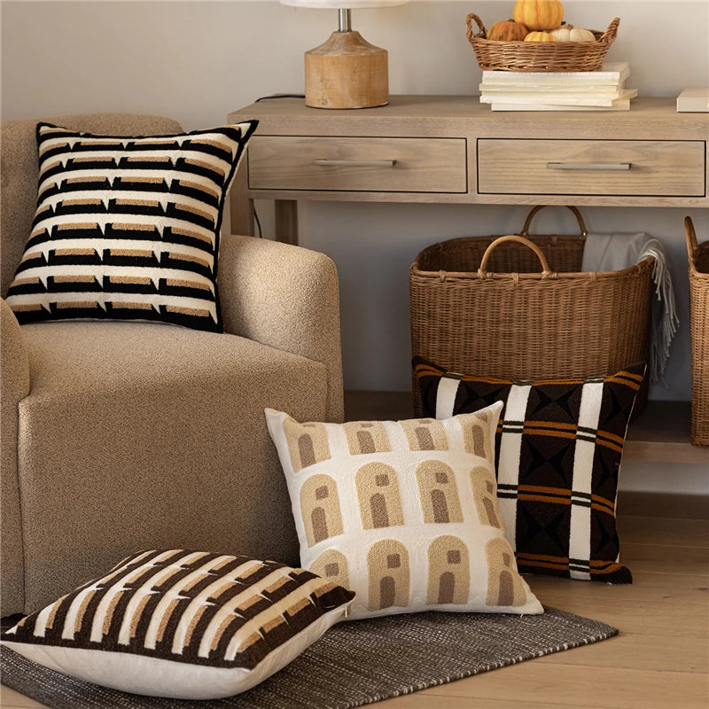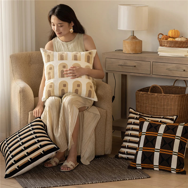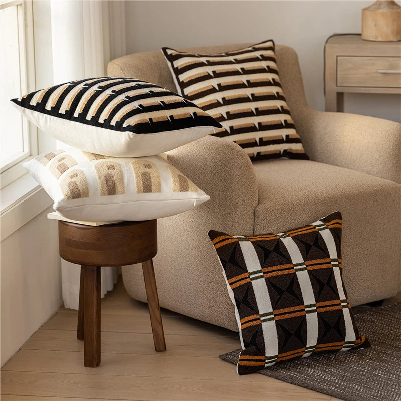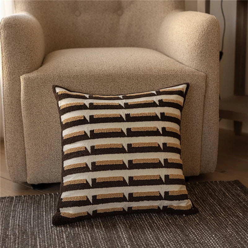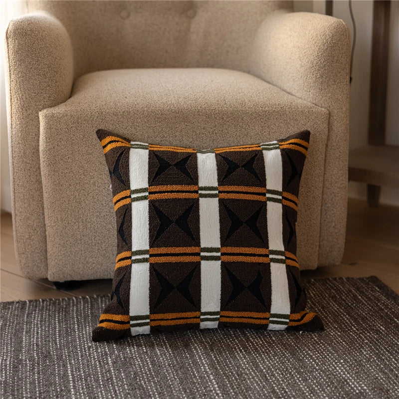 45X45CM Brown Geometry Throw Pillow Cover Nordic Yarn-dyed Stamping Waist Cushion Cover Decor Home Decorative Pillowcase