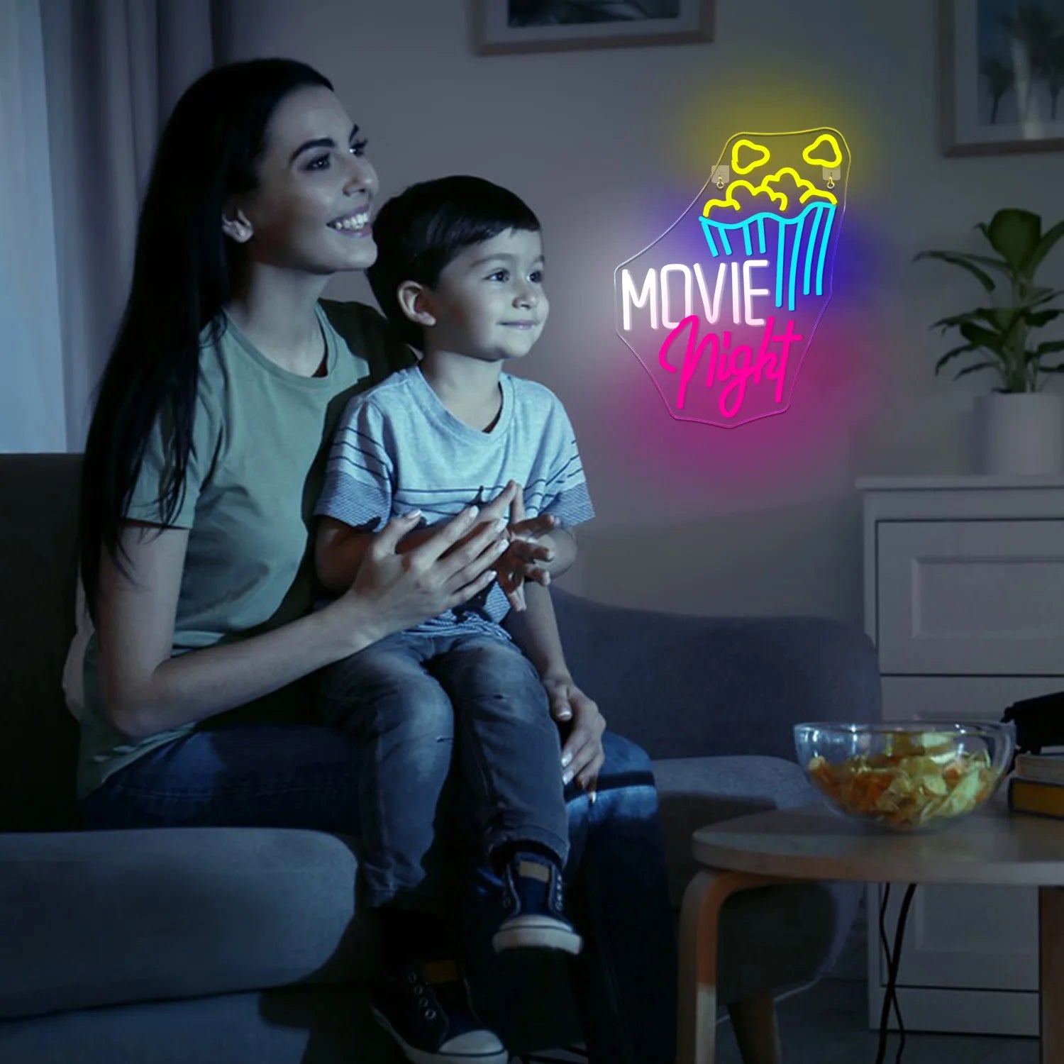 Movie Night Neon Led Sign Theater Film Room Decoration Movie Time Popcorn Light USB Powered Dimmable Wall Lamp Party Glow Lamp