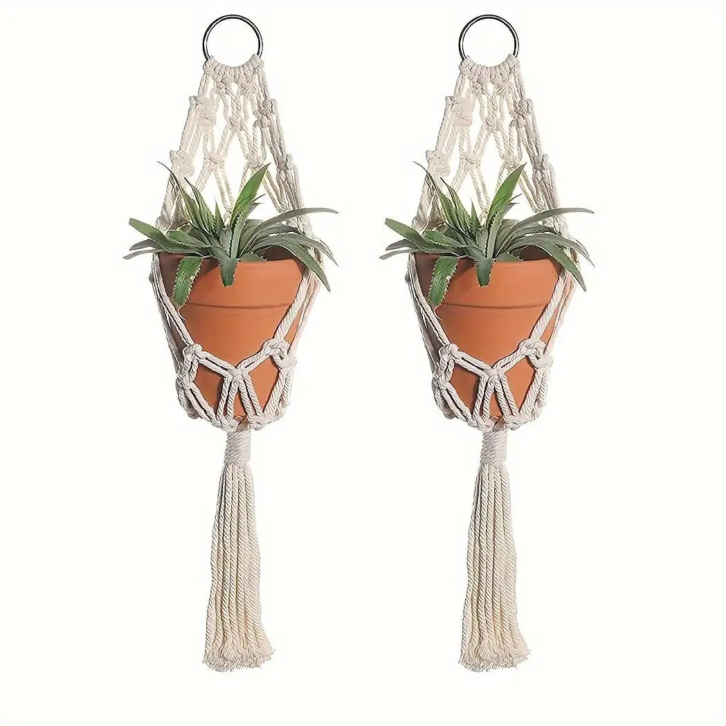 2pcs Boho Chic Macrame Plant Hangers - Handcrafted Rope Baskets for Indoor & Outdoor Decor, Geometric Wall Art