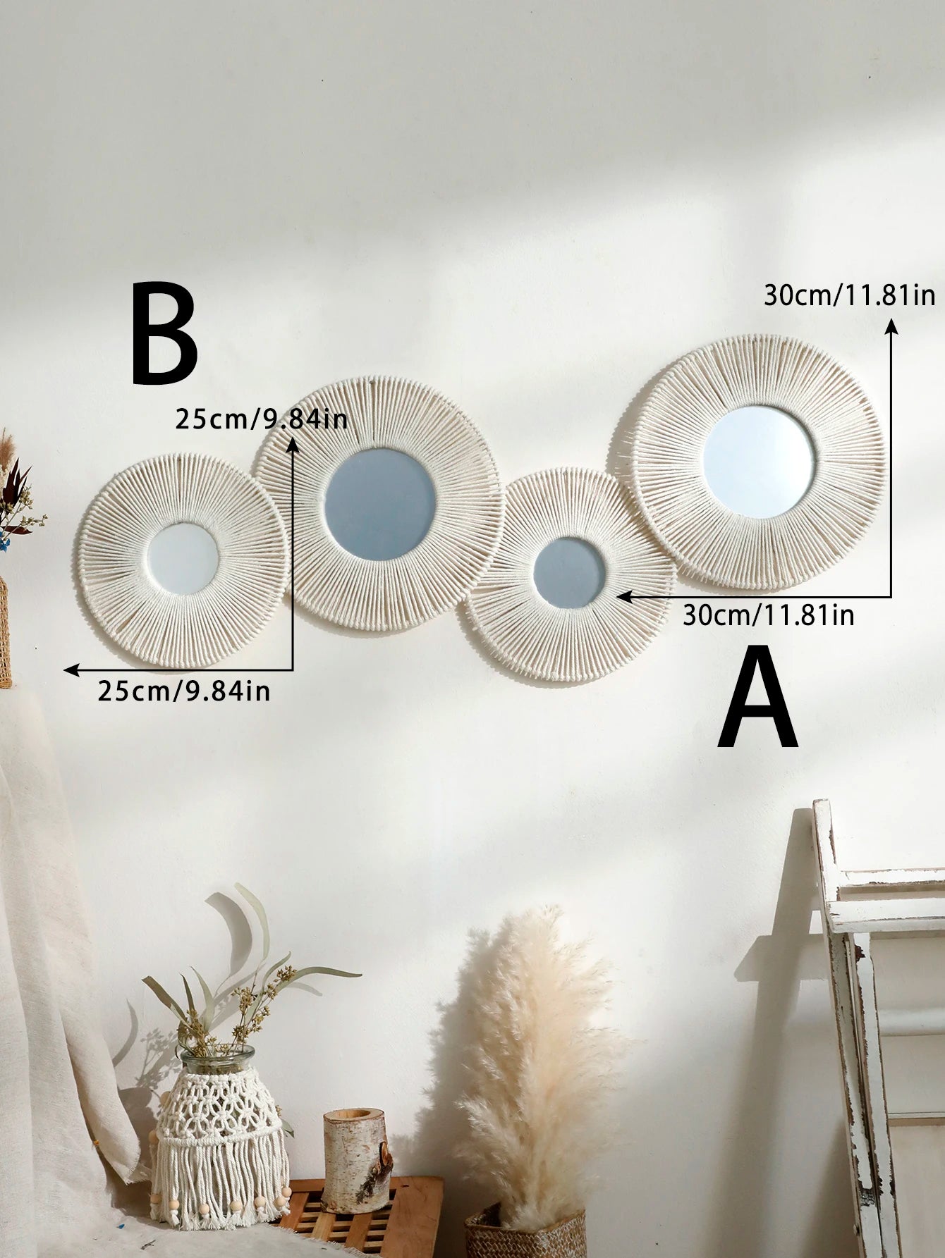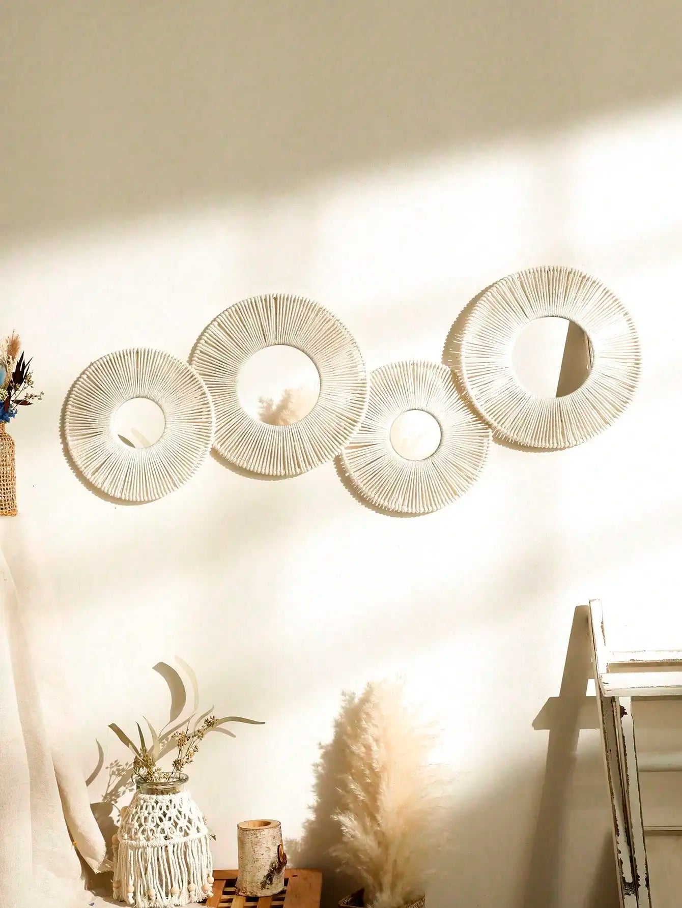 1/2/4pcs Hand Woven Wall Hanging Decorative Mirror Boho Room Decors Aesthetic Home Decoration Tapestry Bedroom Hanging Ornaments