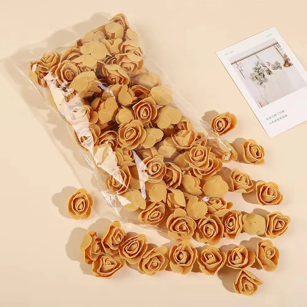 50~500Pcs 3.5cm PE Foam Rose Head Artificial Flower For Wedding Birthday Party Home Decor DIY Bear Rose Valentines Day Gifts