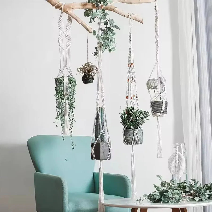 Hanging Plant Handmade Macrame Plant Hanger Flower Pot Planter Hanger Wall Decor Courtyard Garden Hanging Planter Hanging Basket