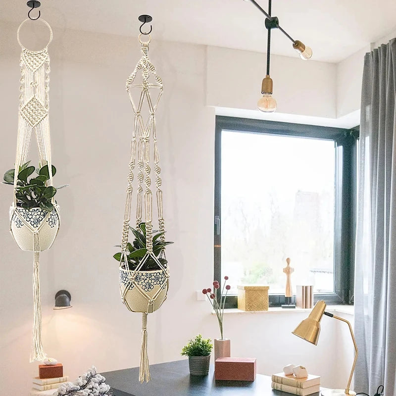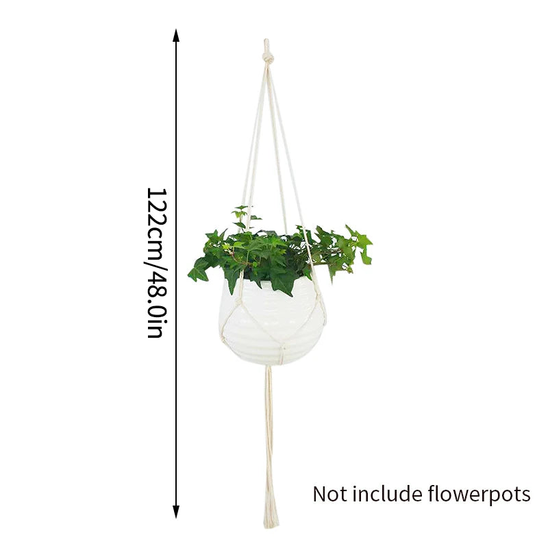 Macrame Handmade Plant Hanger Baskets Cotton Rope Hanger Flower Pot Wall Decor Courtyard Garden Hanging Planter Garden Supplies