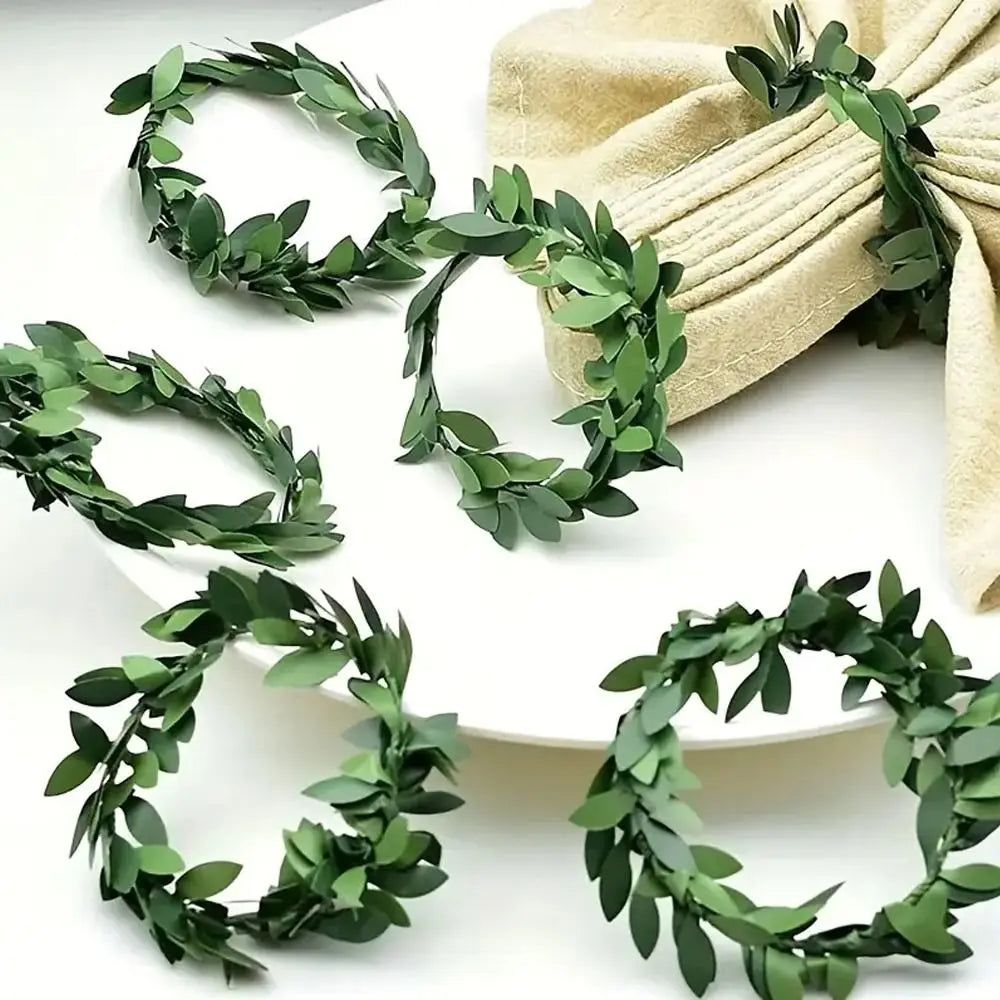 10 Pcs Plastic Green Leaf Rattan Shaped Napkin Ring Woven Handmade Napkin Ring For Restaurant Wedding Table Decoration