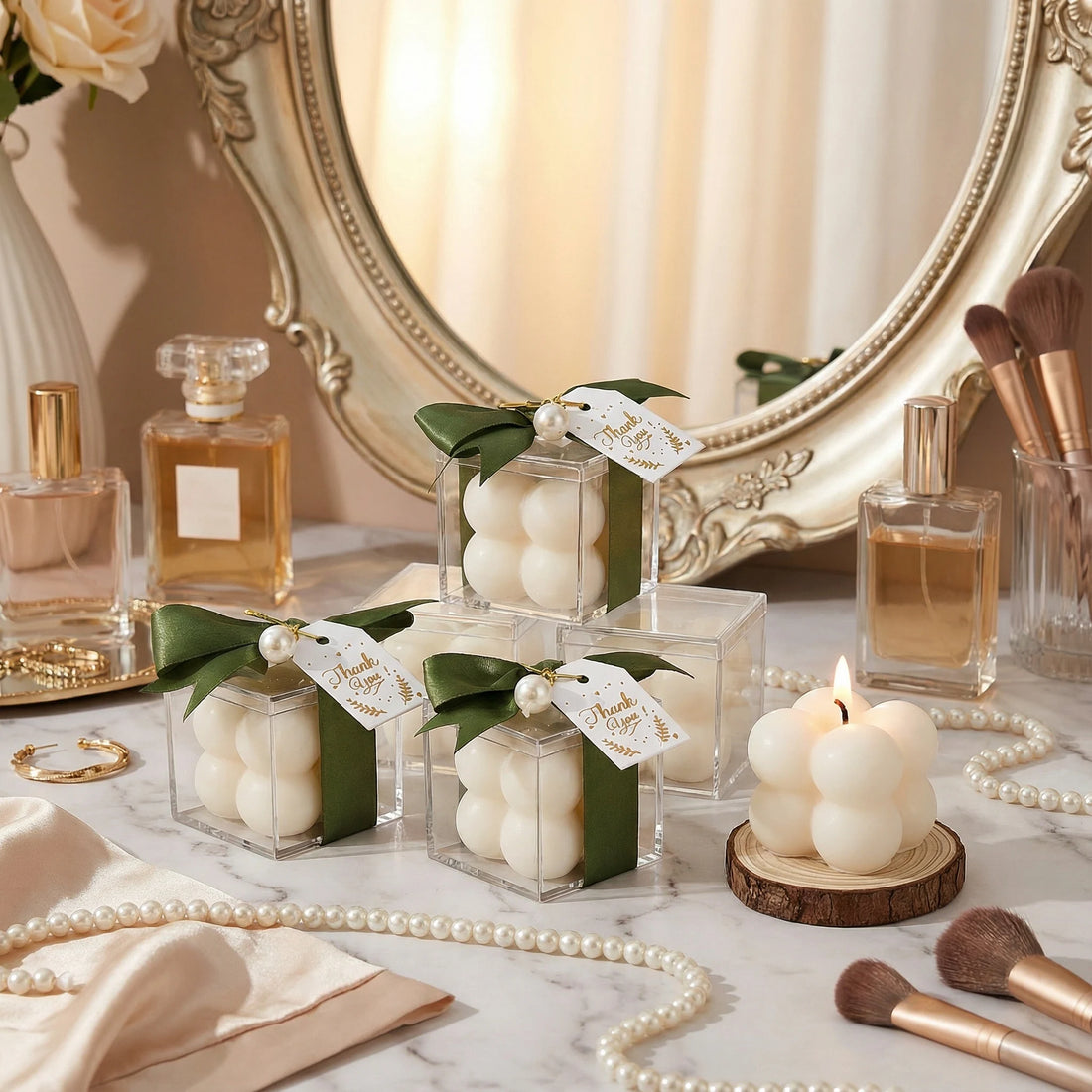 10/20sets Bubble Candle Set with Ribbon and Pearl Charms for Bridal Showers, Baby Showers, Table Decorations and Event Favors