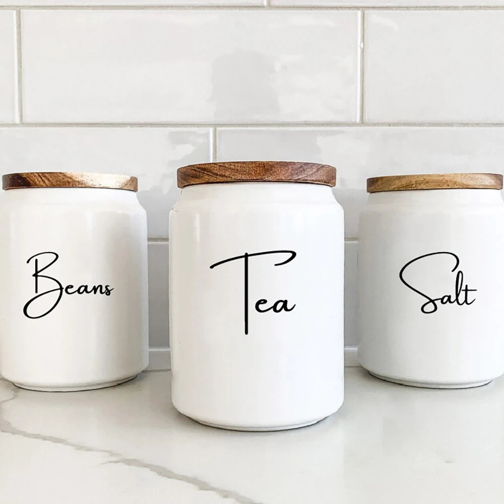 Kitchen Organization Canister Jar Labels Sticker Waterproof Decal Tea Coffee Sugar Baking Salt Quotes Vinyl Mural Art Decals
