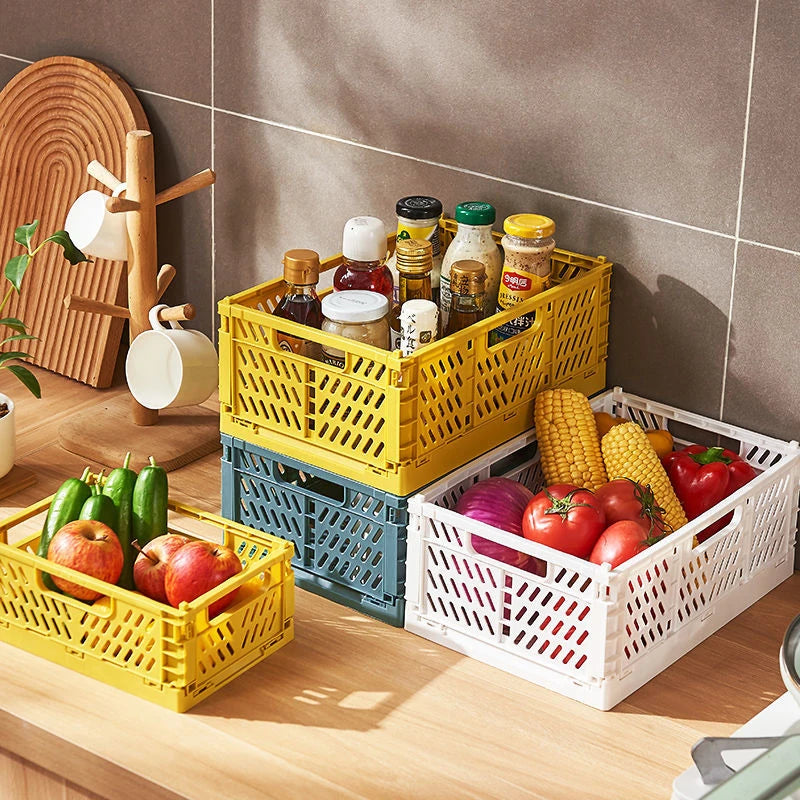 Foldable Storage Baskets Large Capacity Desktop Sundries Storage Box Grocery Holder Vegetable Fruit Basket Kitchen Organizer