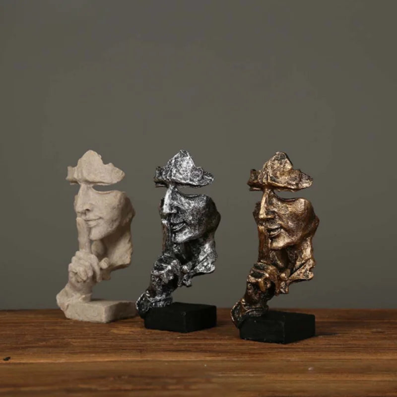 17cm Home Decor Abstract Silence Is Gold Figurine Resin Hand Face Silent Men Statue Sculpture Home Office Living Room Decoration