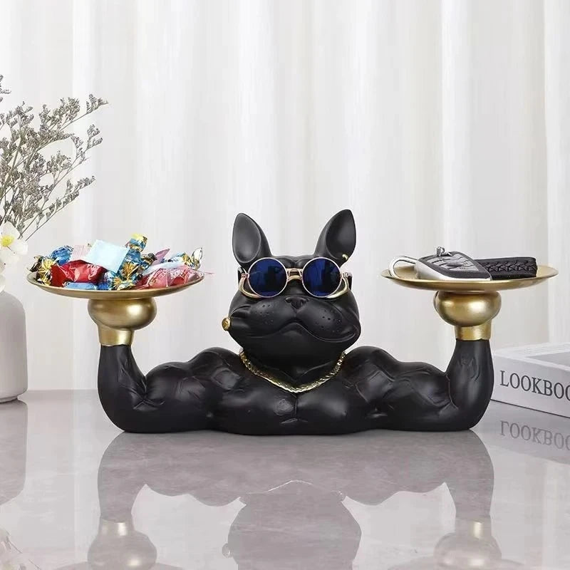30cm/11.8inch Home Decor Bulldog Figurine Dog Statue Key Storage Box Animal Ornament Resin Craft Art Figurine Puppy Sculpture