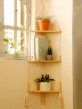 1/2/3-Layers Corner Shelf Wood Display Stand Boho Home Decoration Pastoral Style Macrame Handmade Floating Shelves Living Room
