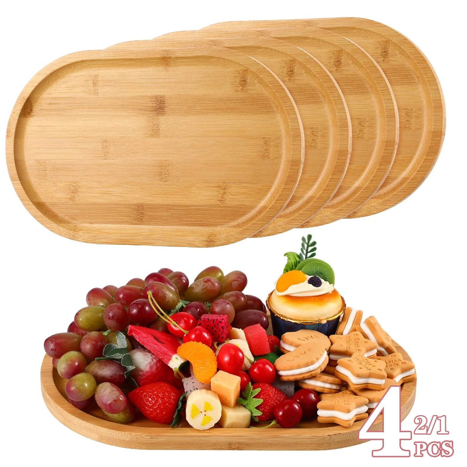 1-4PCS Natural Bamboo Wooden Organizer Tray Oval Rectangular Shape for Bathroom Counter Storage Jewelry and Skincare Display