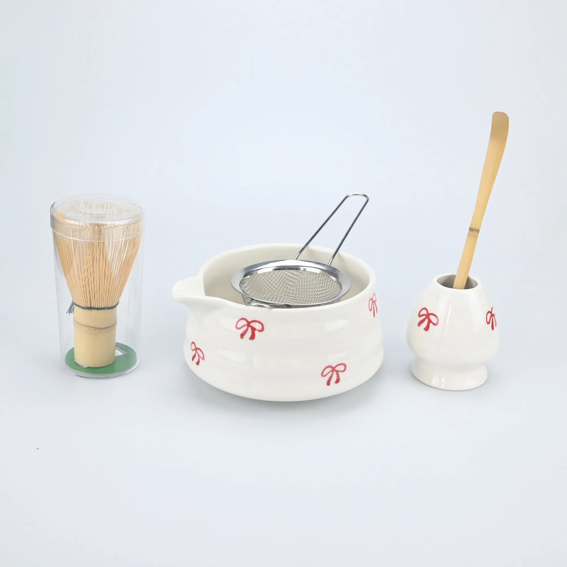 2/4/5pcs Matcha Whisk Set, Cute Bow Japanese Tea Set includes Whisk Sets and Matcha Bowl with Spout, Traditional Japanese Matcha
