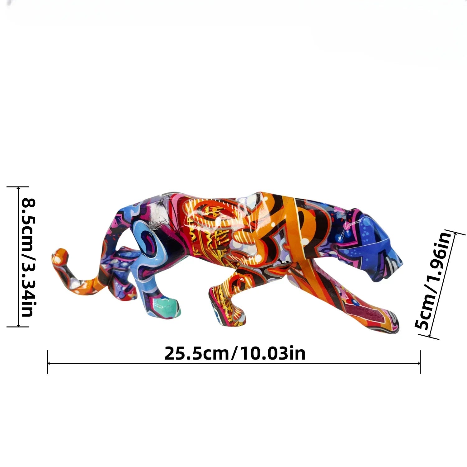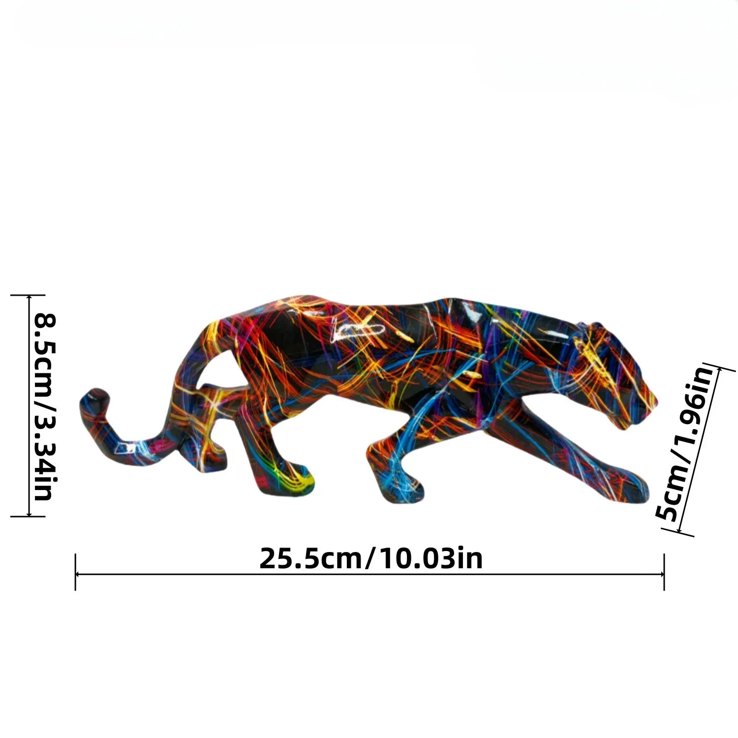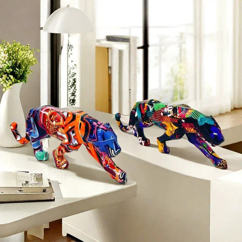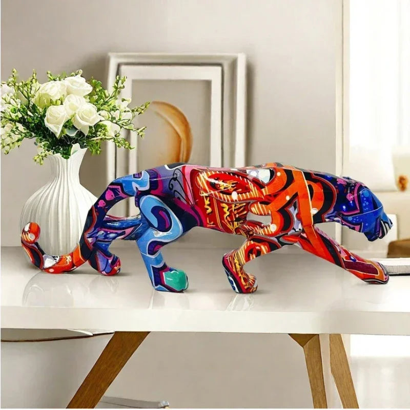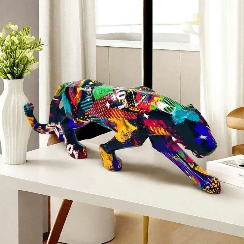 25.5cm Graffiti Panther Statue Animal Figurine Abstract Geometric Style Resin Leopard Sculpture Home Office Desktop Decoration