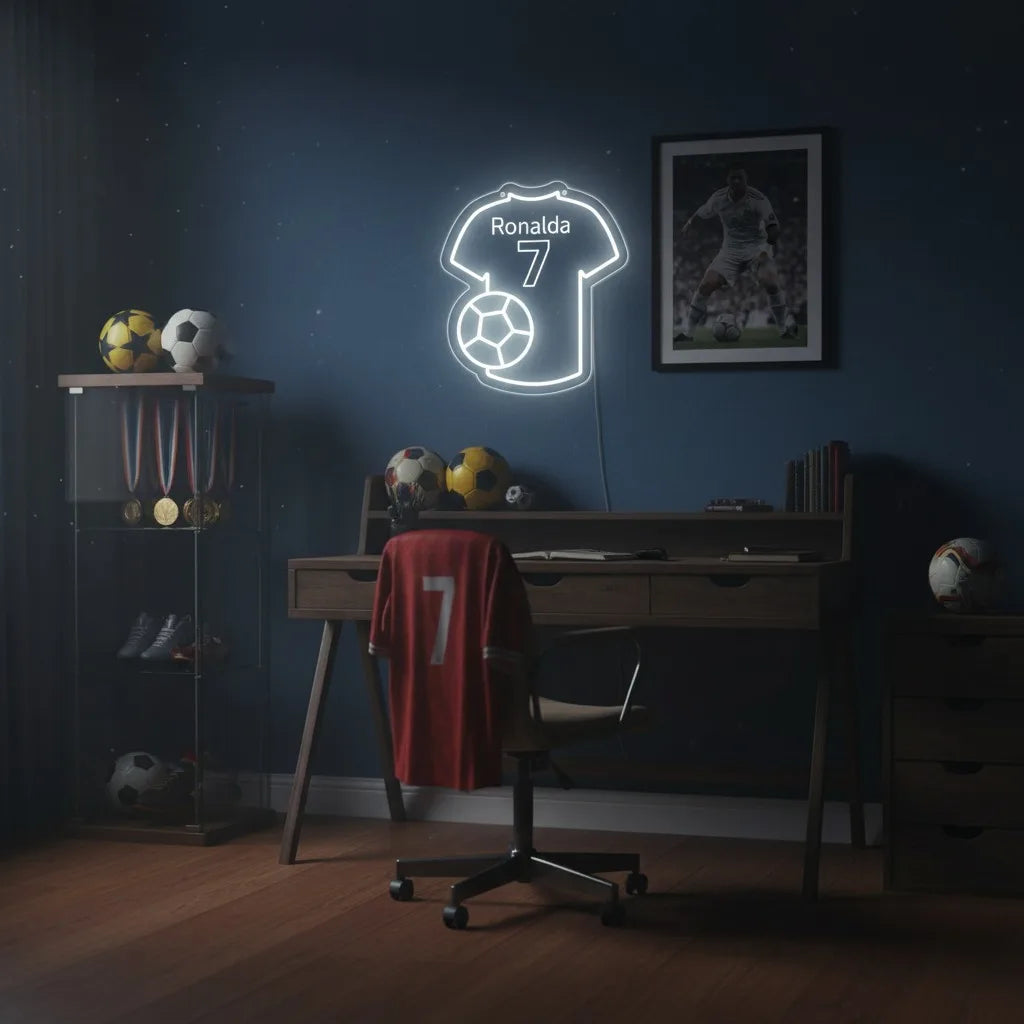 Custom Football Neon Sign For Kids Name, Boy's Bedroom Home Wall Decor, Jersey Personalized Gift for Kids Soccer Football Gifts