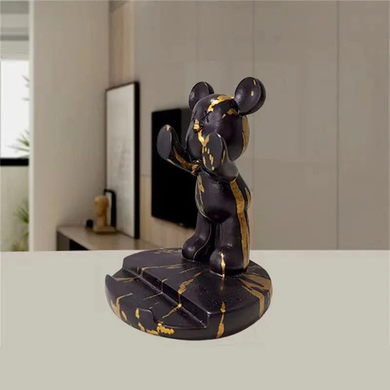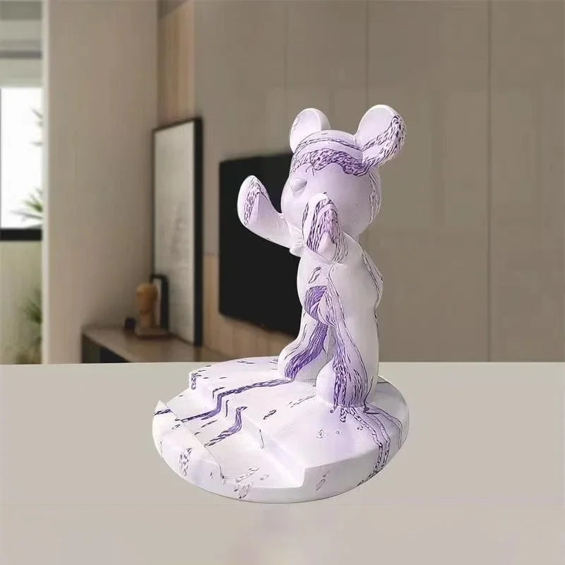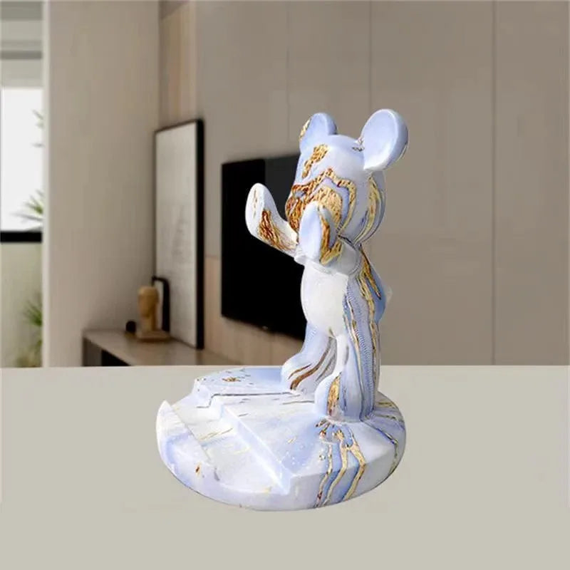 Cute Graffiti Bear Resin Statue & Phone Holder Funny Desk Decor Creative Gift for Friends Cool Bedroom Shelf Ornament With