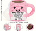 Funny Handmade Crochet Coffee Mug Figure With Card Cute Desktop Ornament Knitted Holiday Gifts Home Office Decor