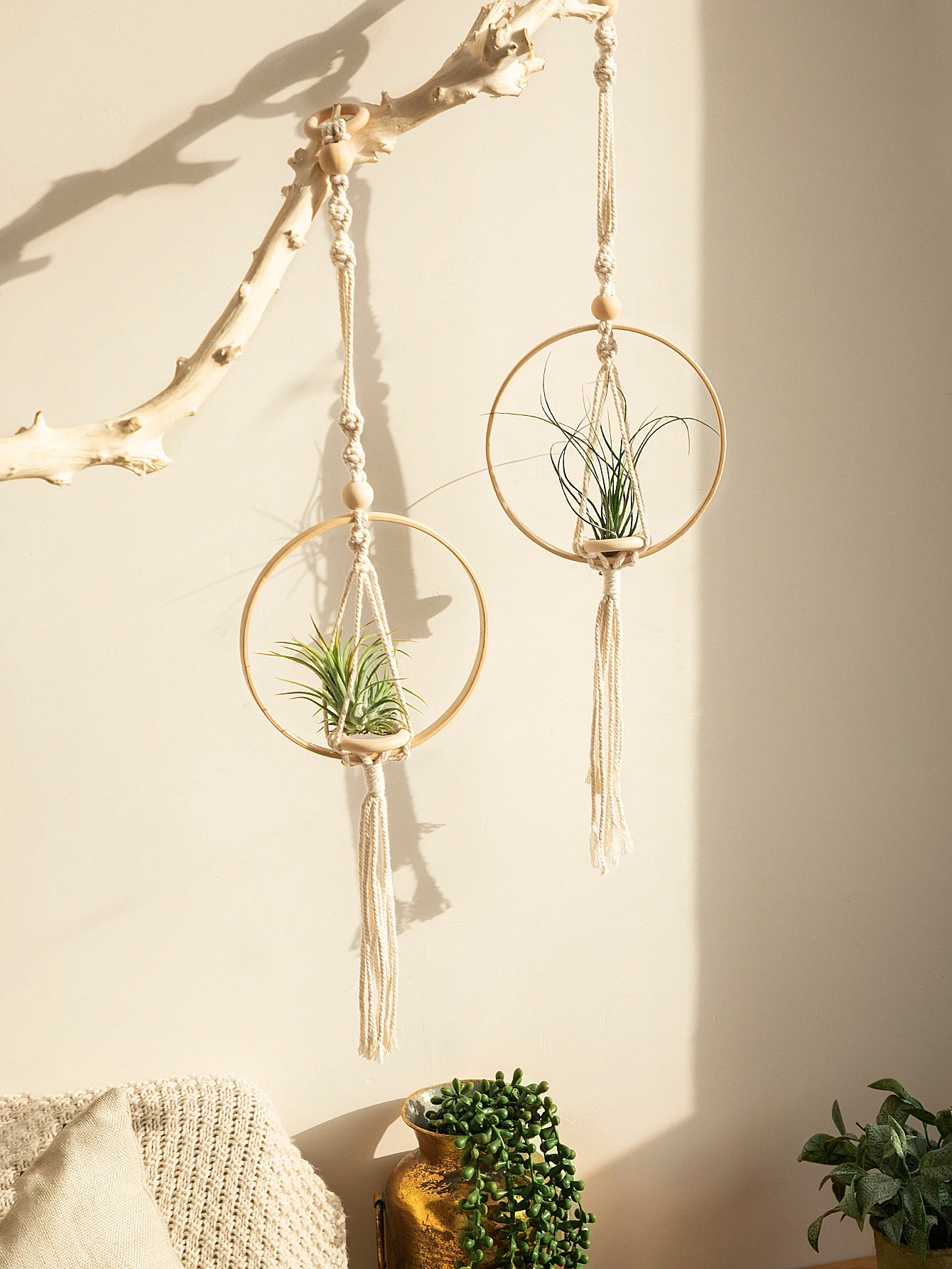 Macrame Air Hanging Planter Flower Pots Boho Home Decor Rope Plant Holder Woven Basket Balcony Garden Bedroom Decorative Gift
