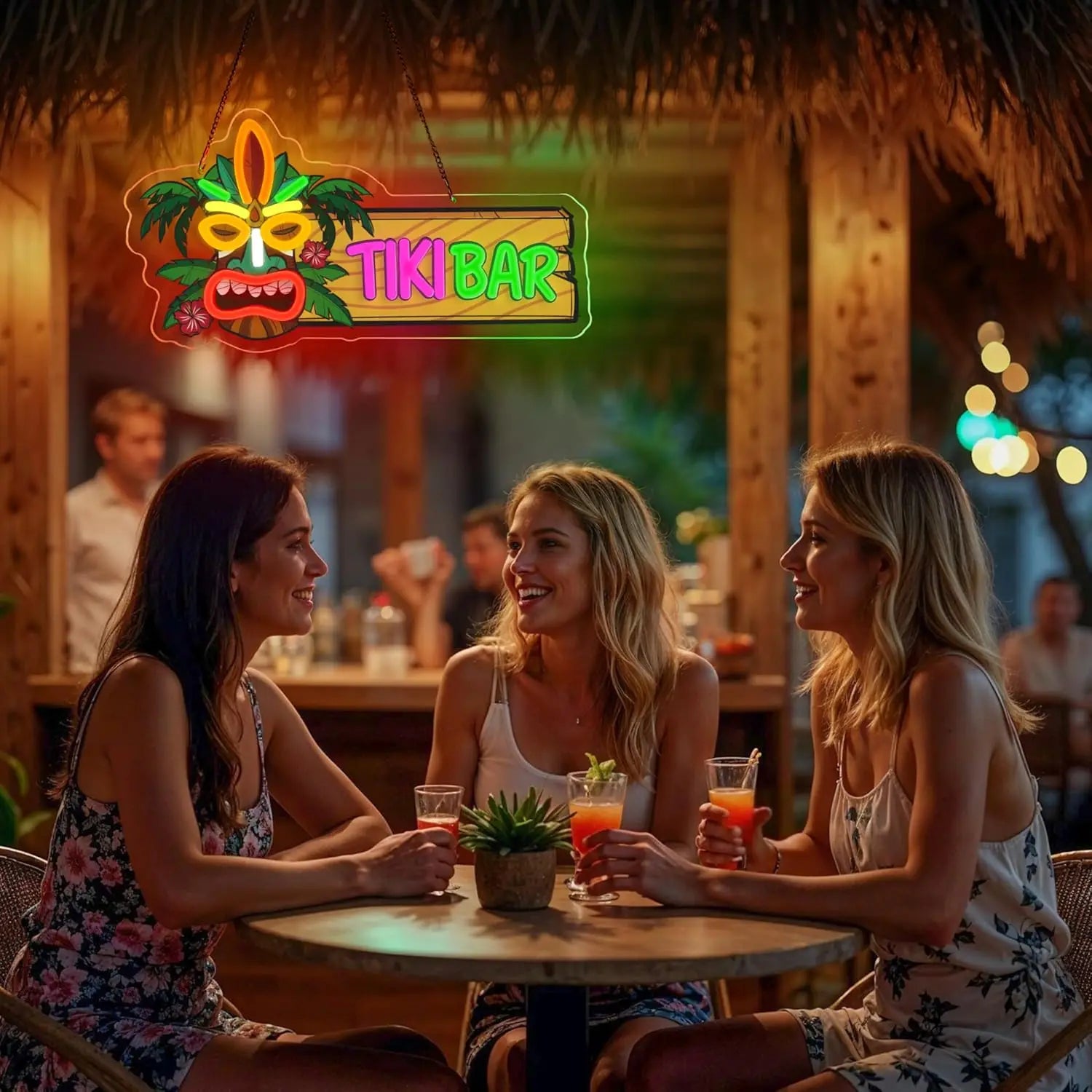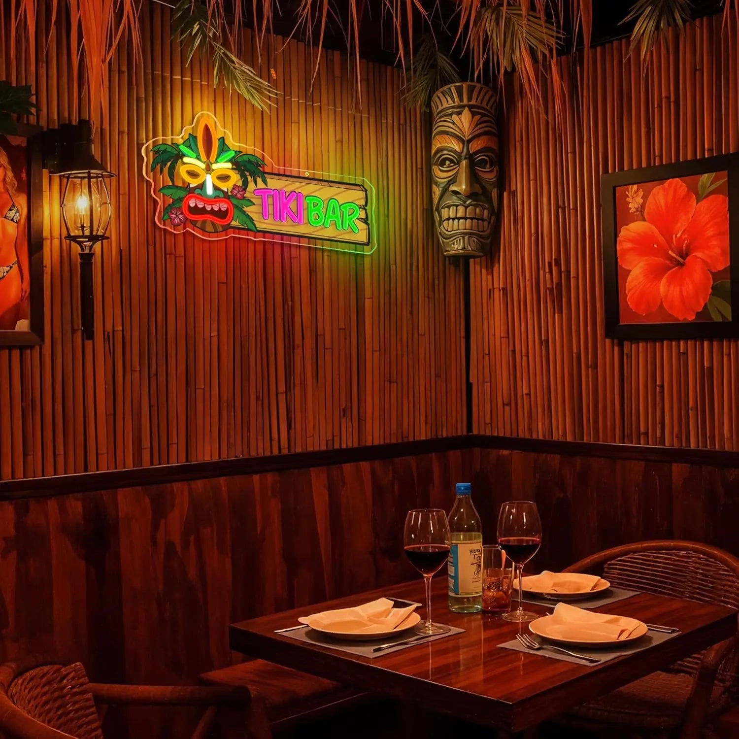 Tiki Bar Neon Sign UV Print Dimmabel Tiki Bar Neon Light Wall Decor for Aloha Hawaii Tropical Birthday Man Cave  Party