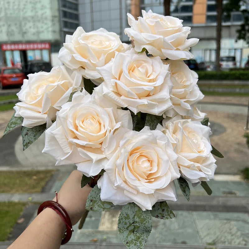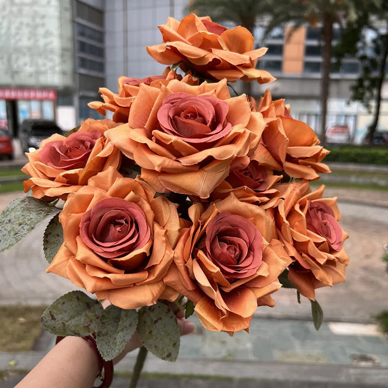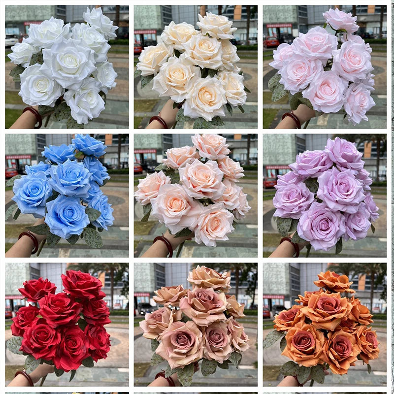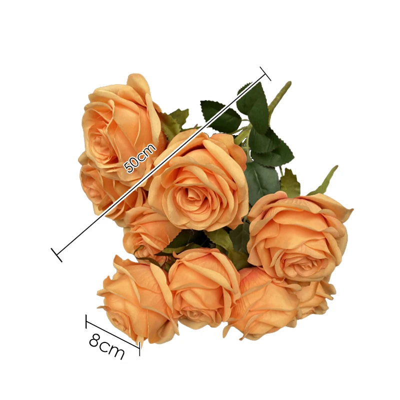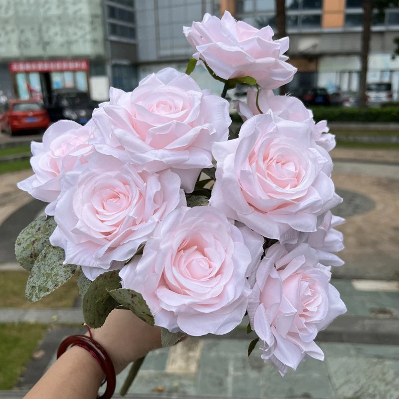 Top 9 Heads Curled Edge Rose Bouquet Artificial Flower Wedding Arrangement Materials Room Home Table Vase Decor Photo Props