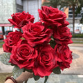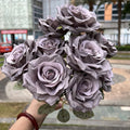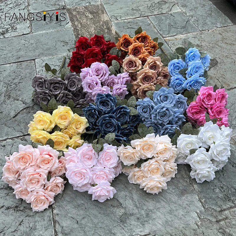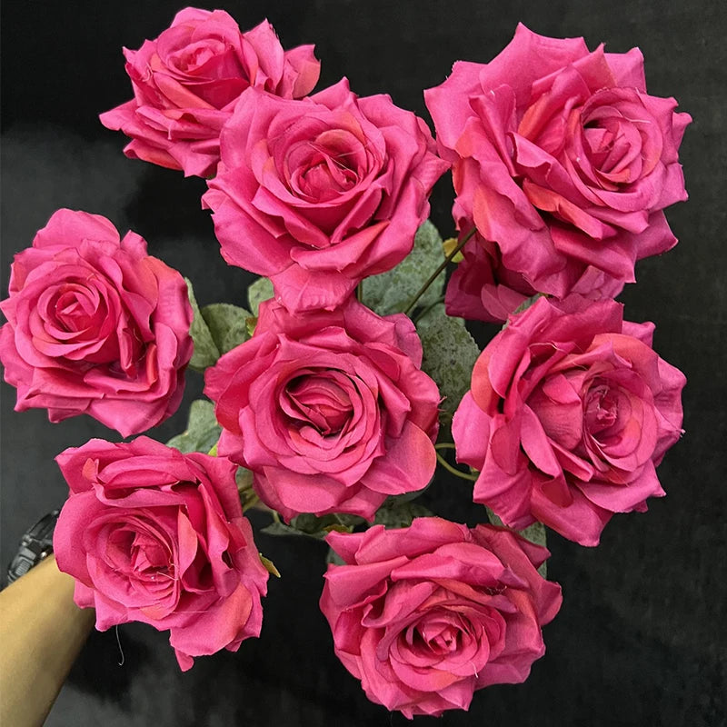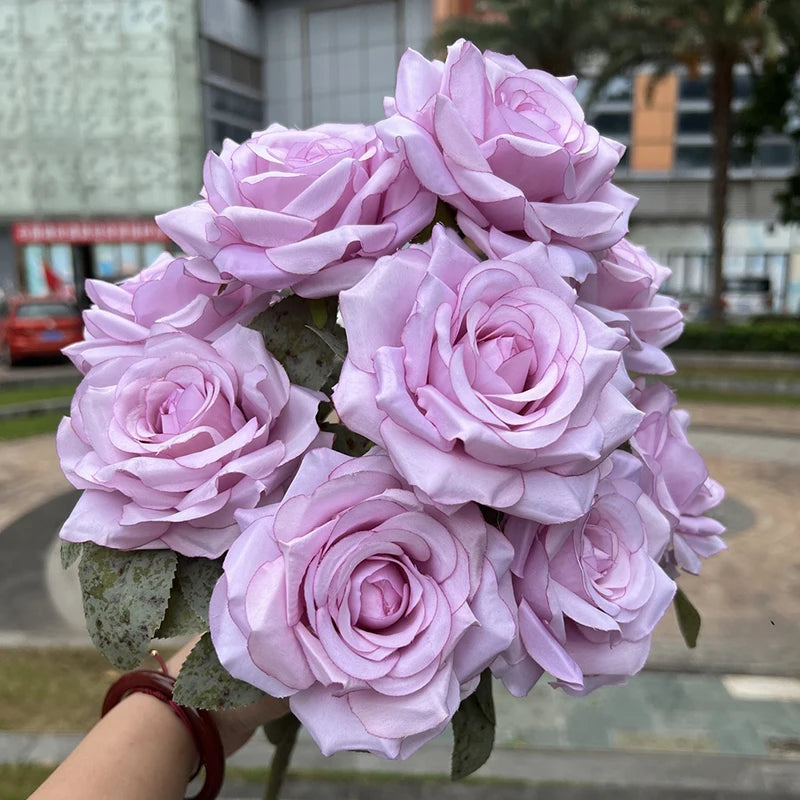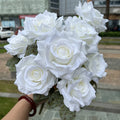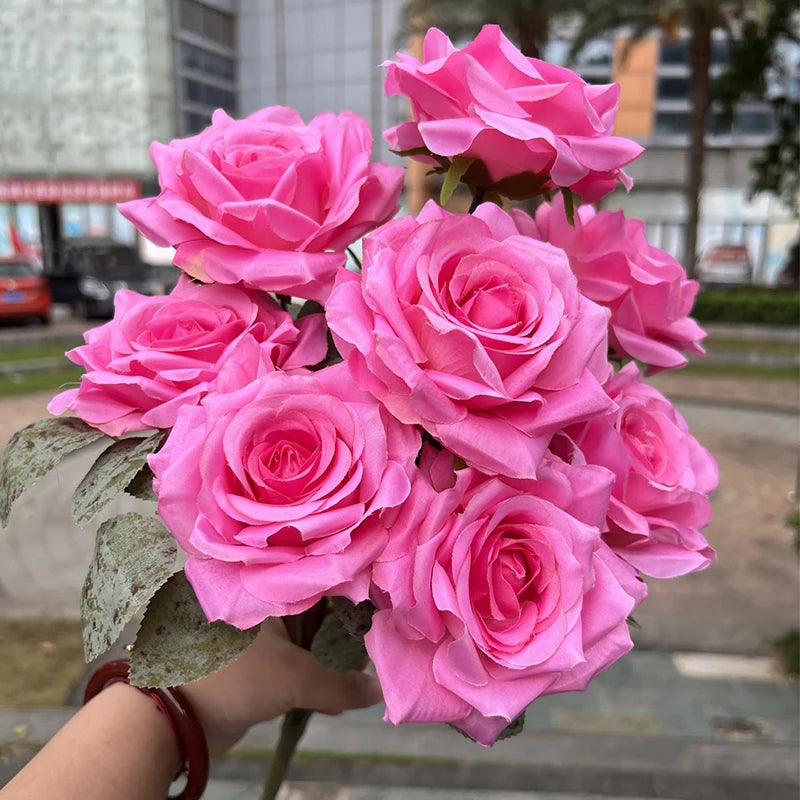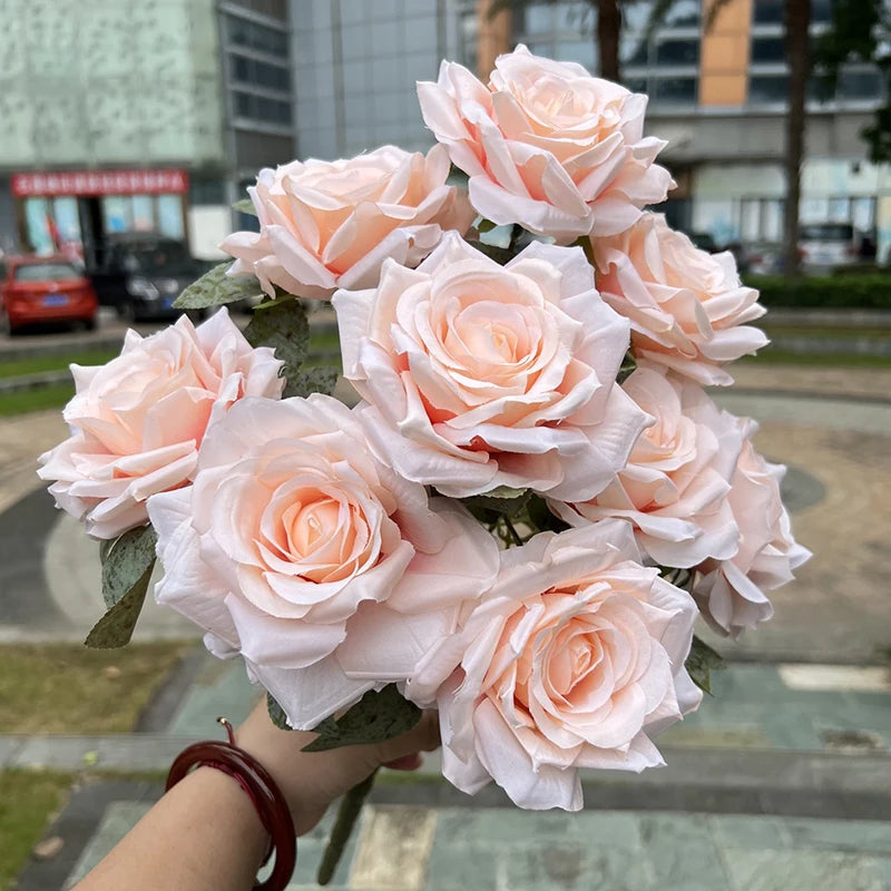 Top 9 Heads Curled Edge Rose Bouquet Artificial Flower Wedding Arrangement Materials Room Home Table Vase Decor Photo Props