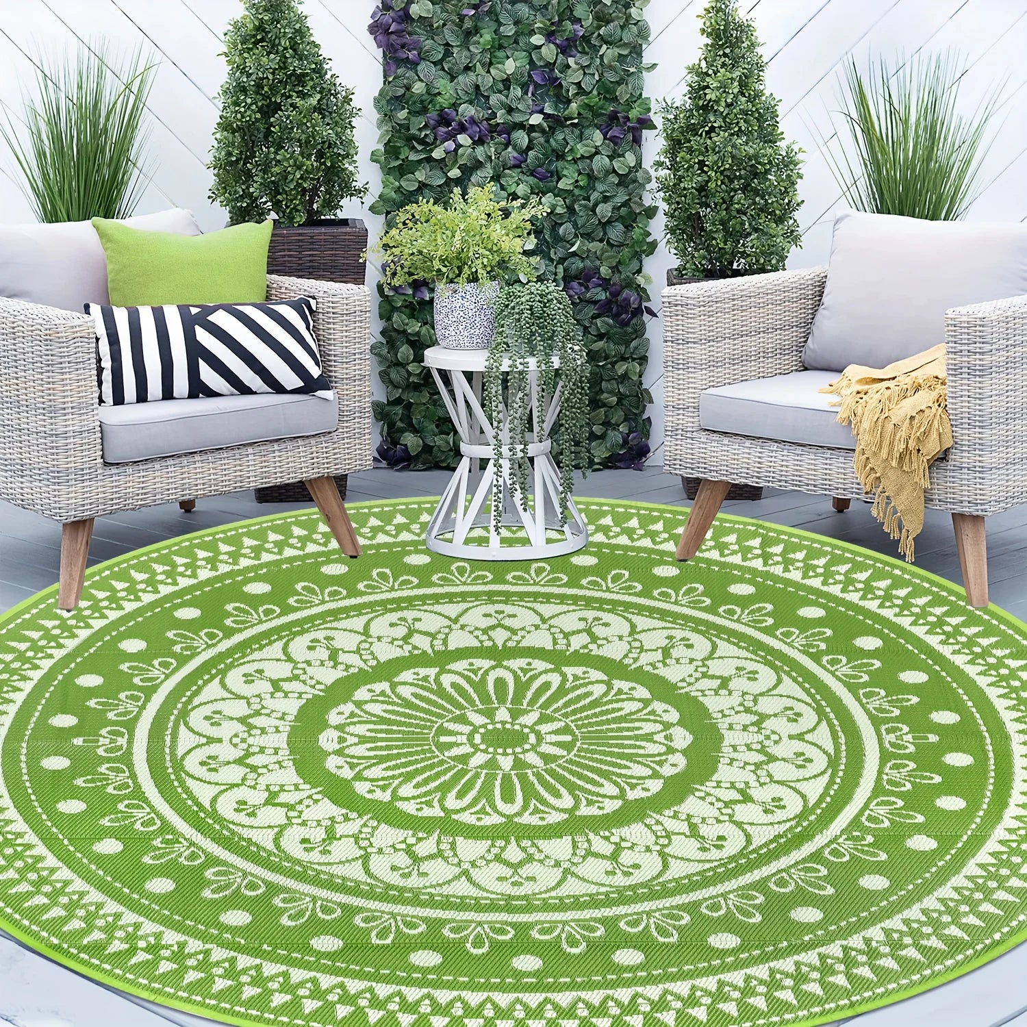 VIKAMA Outdoor Circular Coral Fleece Carpet - Easy To Clean, Camping Picnic Mat, Stain-Resistant, Lawn And Beach Blanket, Decor