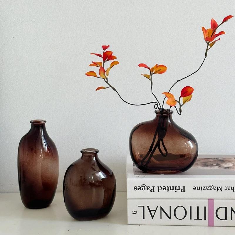 Retro Glass Vase Nordic Flower Vases Transparent Desktop Decoration Glass Vase Pot Flower Plants Glass Flower Arrangements Vase