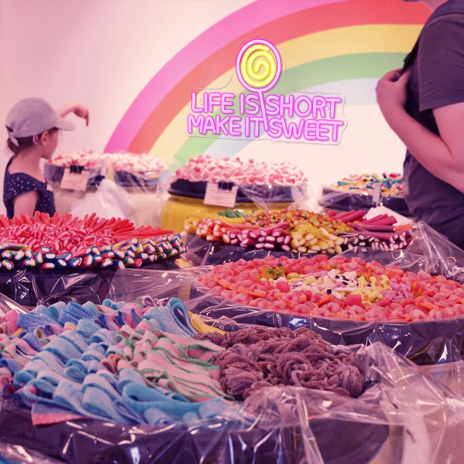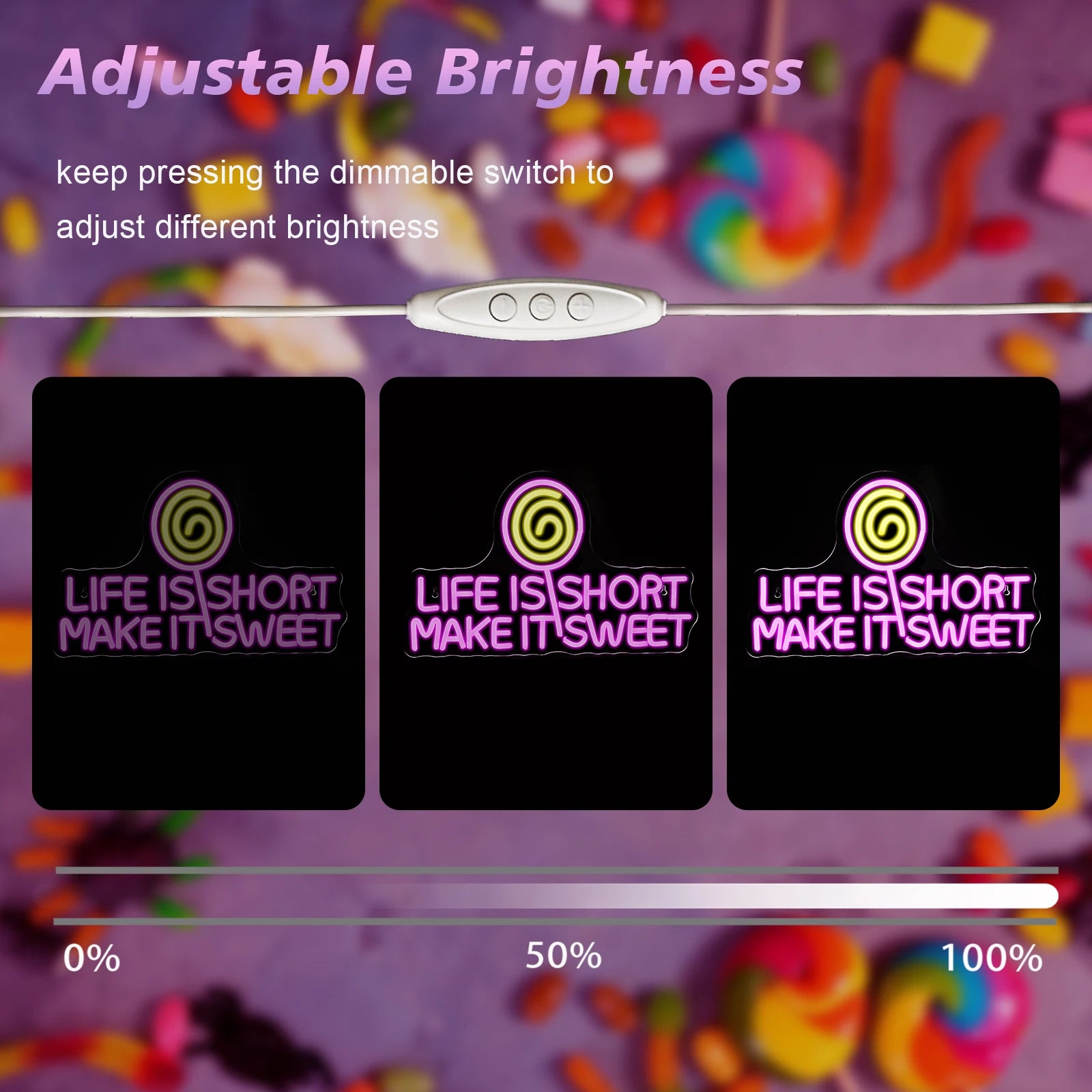 Life Is Short Make It Sweet Neon Signs Led Light Up Sign Shop Sign Candy Art Neon Logo For room Decoration Dessert Shop Dimmable
