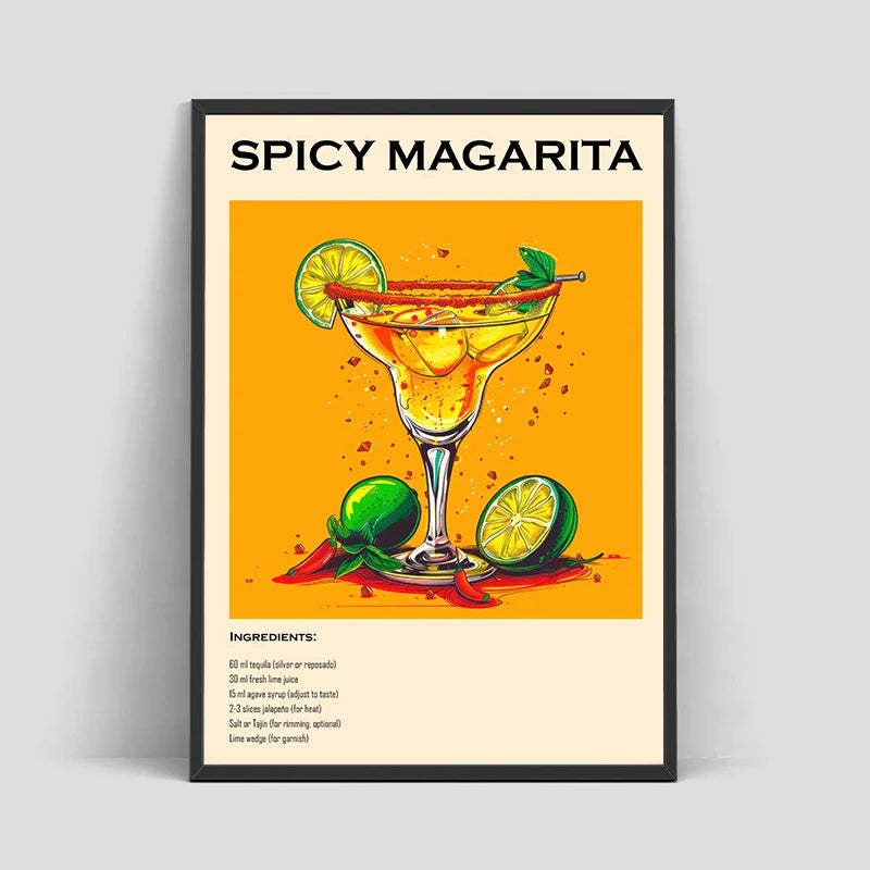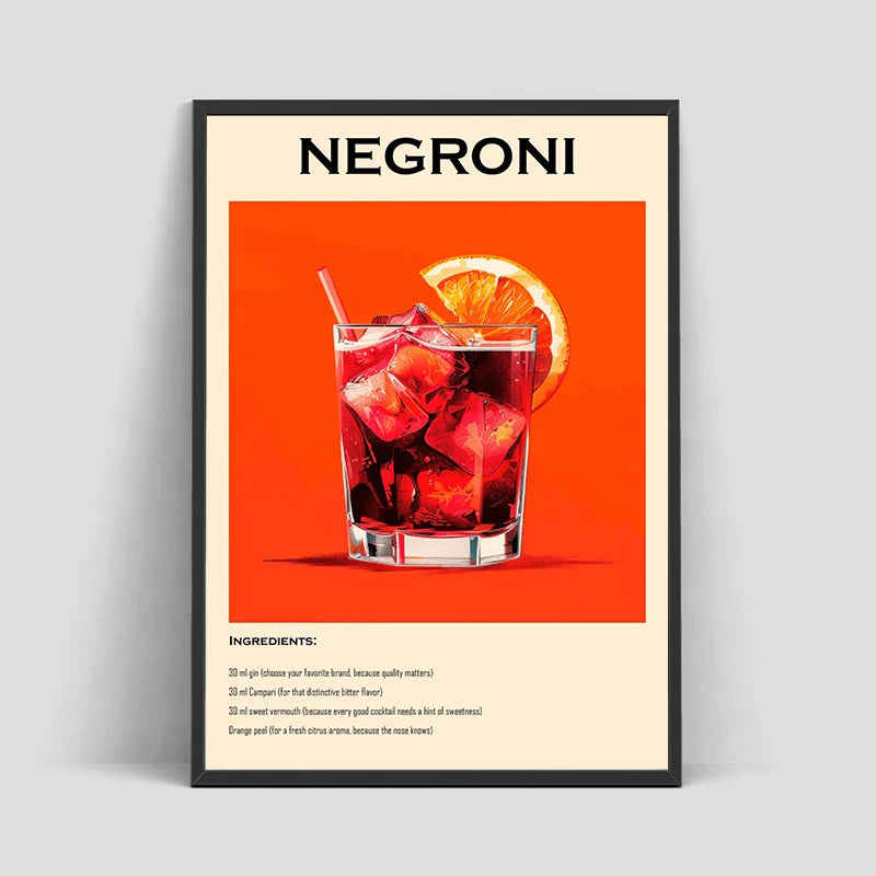 Old Fashioned Cocktail Drinks Negroni Mojito Posters Retro Aperol Spritz Canvas Prints Wall Art Painting Pictures Bar Kitchen