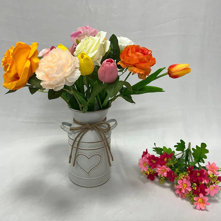 Retro wall mounted wrought iron vase, hanging basin, iron plate hanging bucket, balcony hanging succulent green plant hanging
