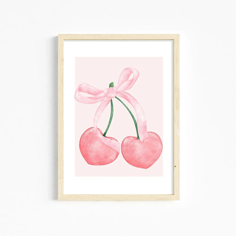 Trendy Pink Wall Art Bows Cherry Balloon Puppy Butterfly Canvas Painting Posters and Prints College Apartment Girl's Room Decor