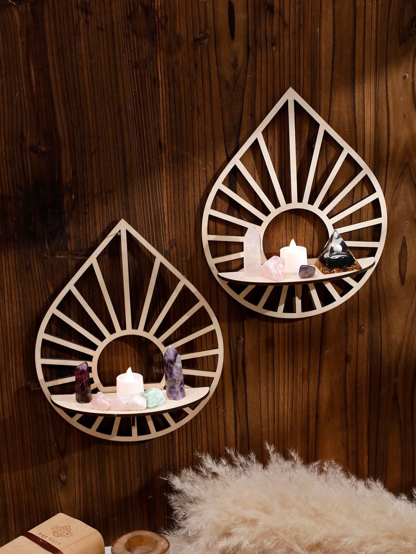 Wood Wall Shelf Floating Wall Shelf Holder Crystal Shelf Display   Boho Home Decoration Wall Mounted Shelf For Living Room Gift