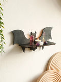 Wooden Shelf Gothic Bat Wall Hanging Decor Black Floating Shelves Display Stand Crystal Holder Witch Home Decor Halloween Decor