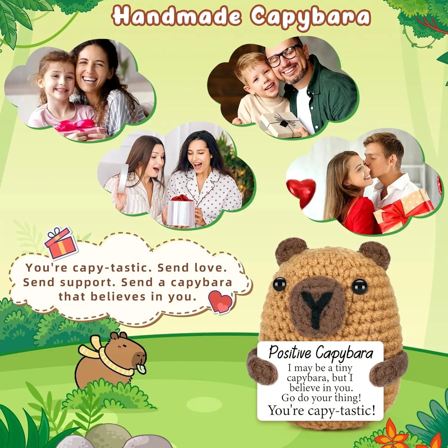Funny Crochet Emotional Support Capybara Doll With Card Desktop Ornament Handmade Knitted Capybara Christmas Gifts Home Decor