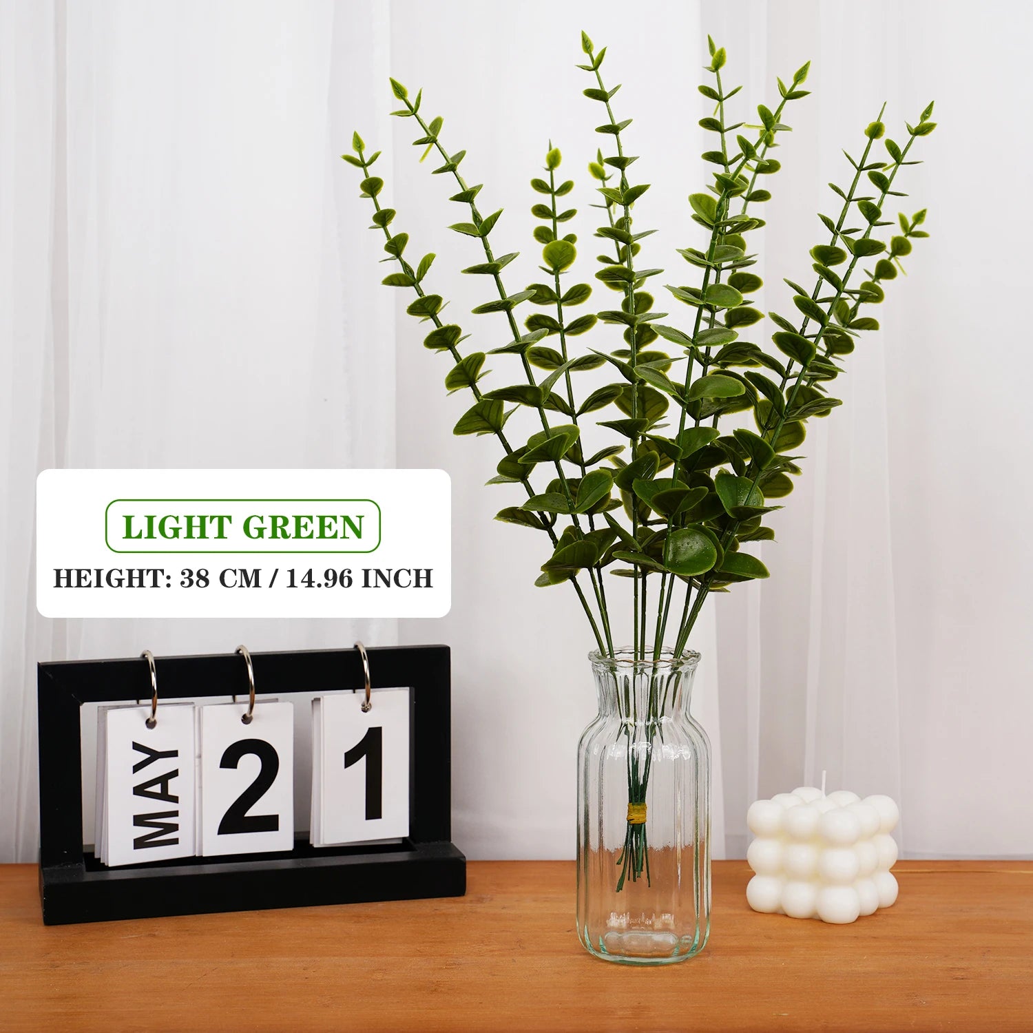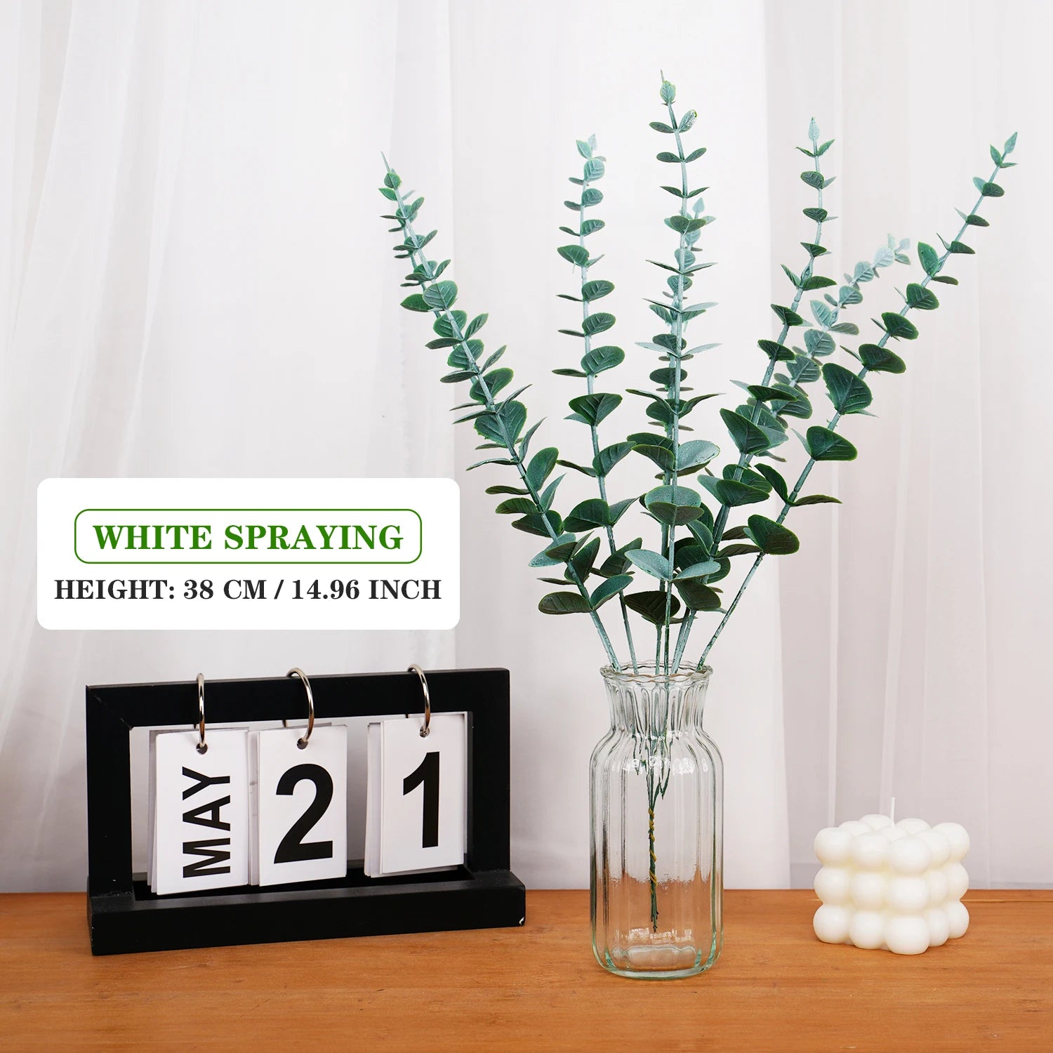 15PCS Artificial Eucalyptus Leaves Greenery Stems with Frost for Home Party Wedding Outdoor Garden Decoration Vase Arrangements