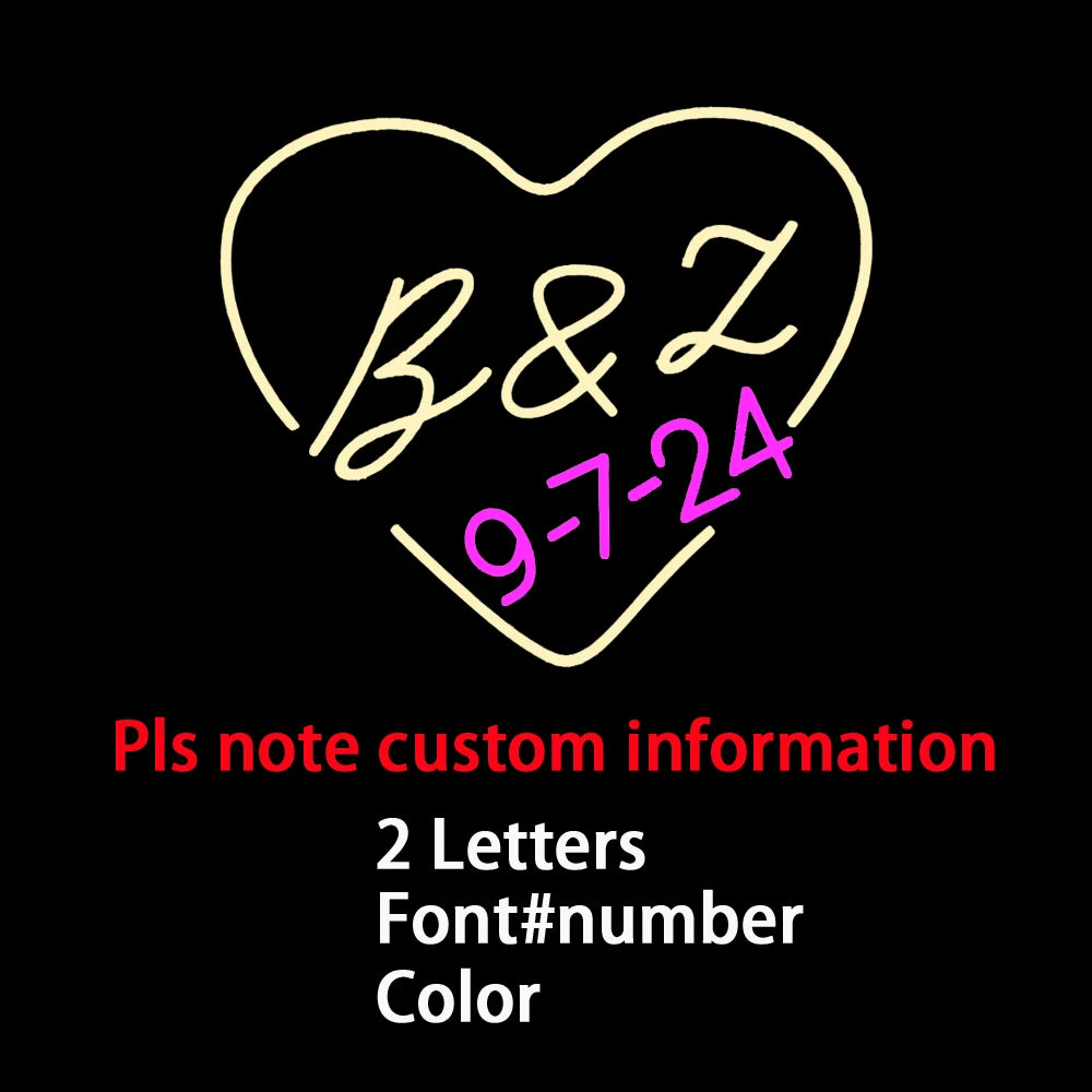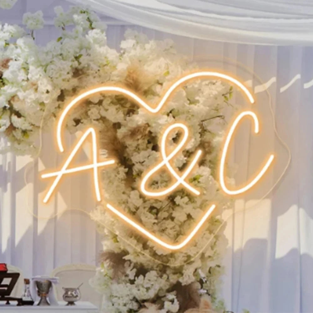 Custom Neon Sign Heart Neon Initials Name Wedding Sign Led Name Neon Lignt Up Sign For Room Decoration Home Party Wall Backdrop