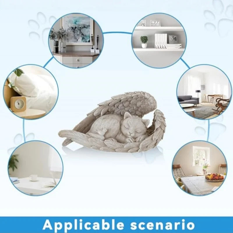 dog/Cat Angel Memorial Statue Commemorates Our Lost Fur Baby,Cat Figurines is Placed in The Outdoor Garden or Tombstone, Resin