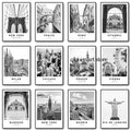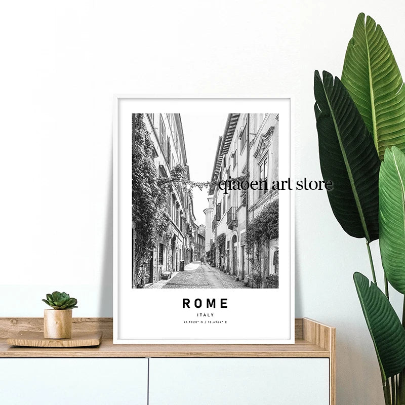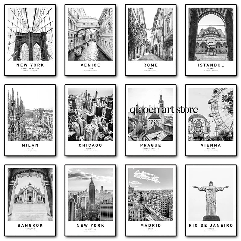Paris New York Chicago Rome Architecture Travel Poster Black and White Canvas Printing Wall Art Picture for Room Home Decor