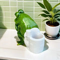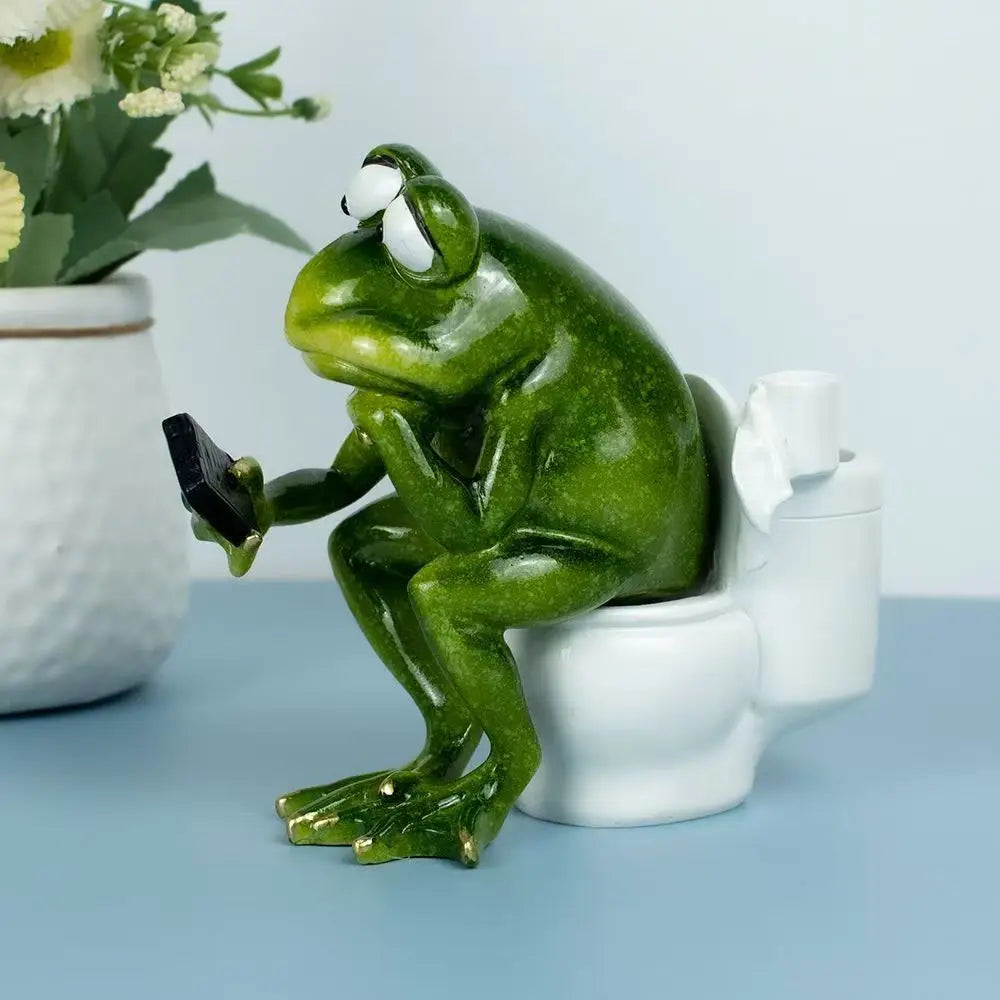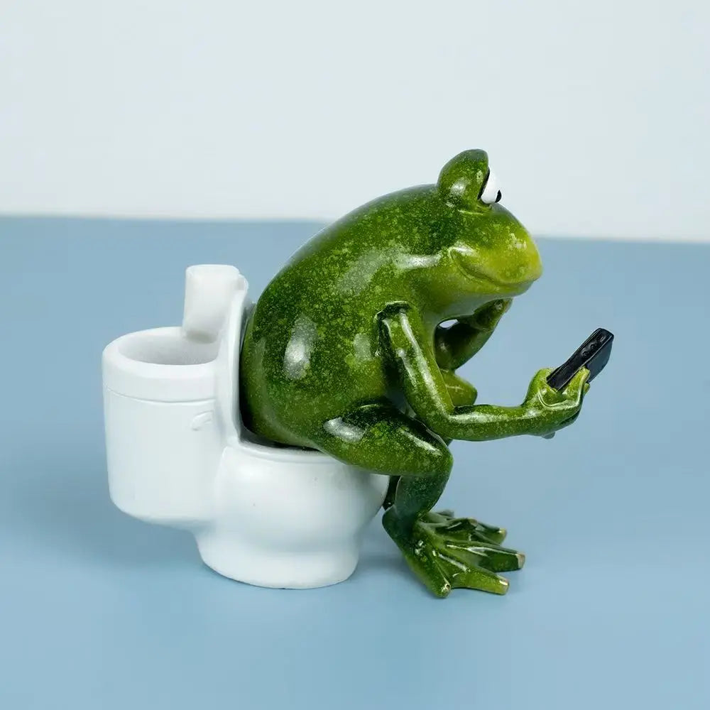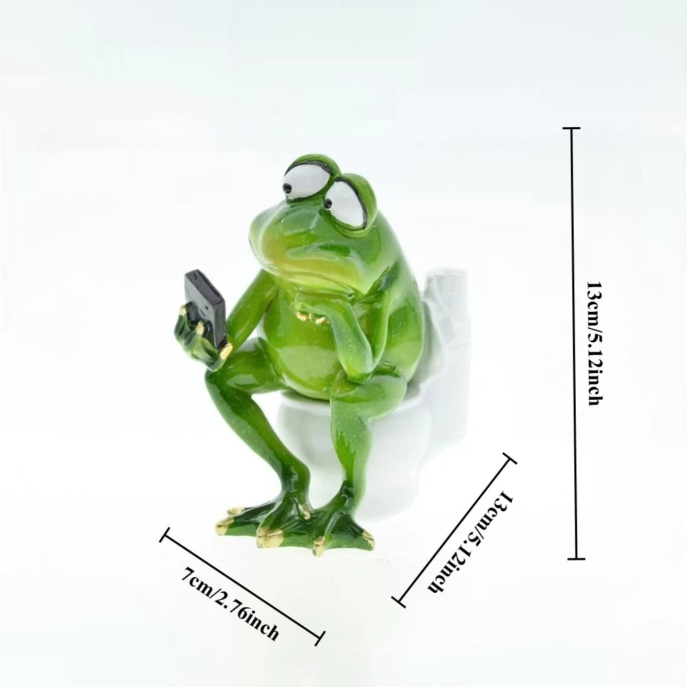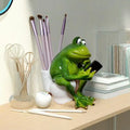 Whimsical Frog on Toilet Statue, Multifunctional Organizer with Pen Holder, Makeup Brush Pot & Ashtray, Novelty Desk Decor