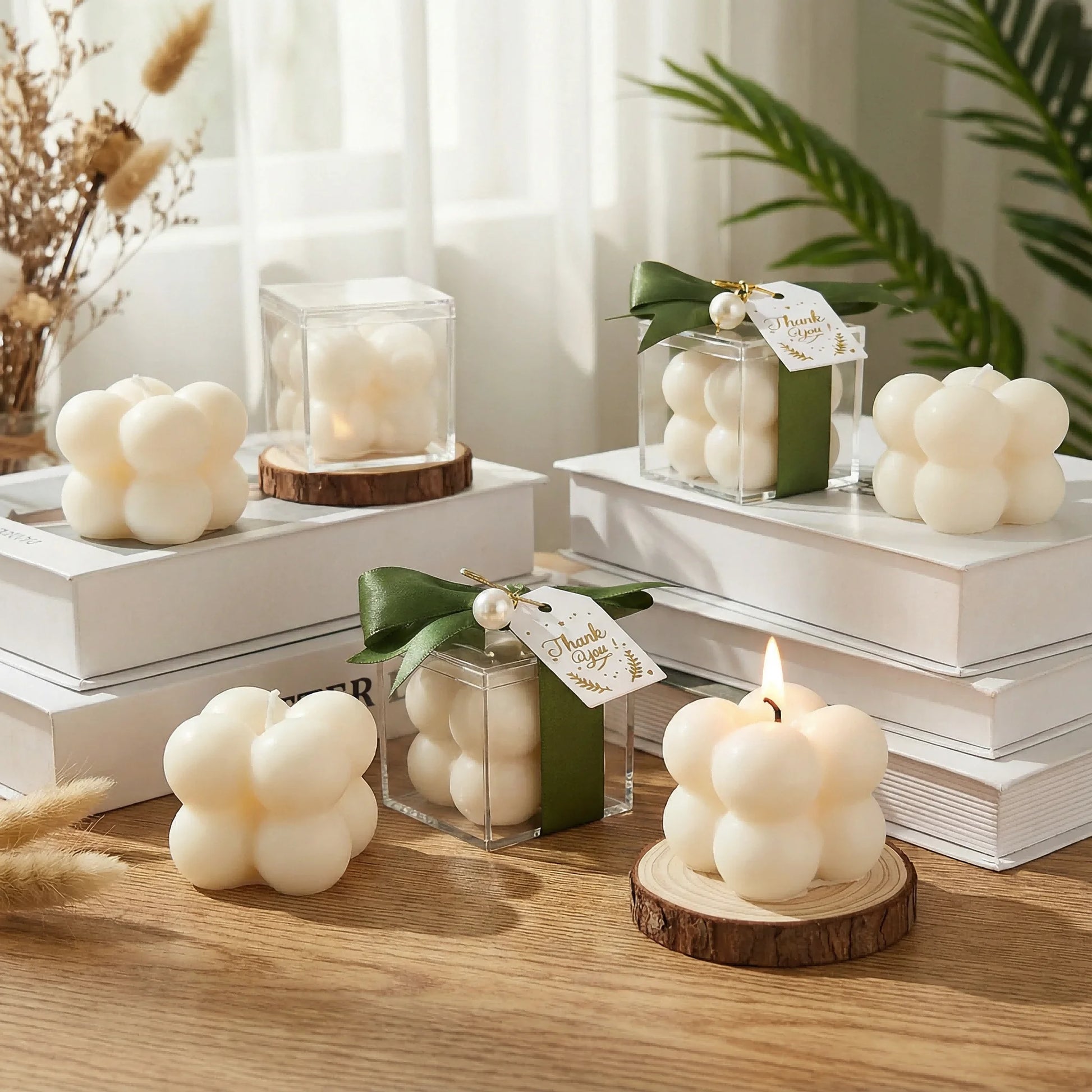 10/20sets Bubble Candle Set with Ribbon and Pearl Charms for Bridal Showers, Baby Showers, Table Decorations and Event Favors