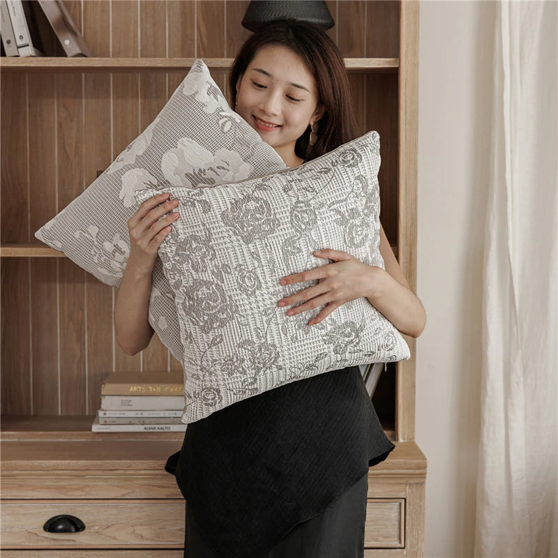 45X45CM Plant Stamen Throw Pillow Cover Yarn-dyed Stamping Waist Cushion Cover Decor Home Decorative Pillowcase
