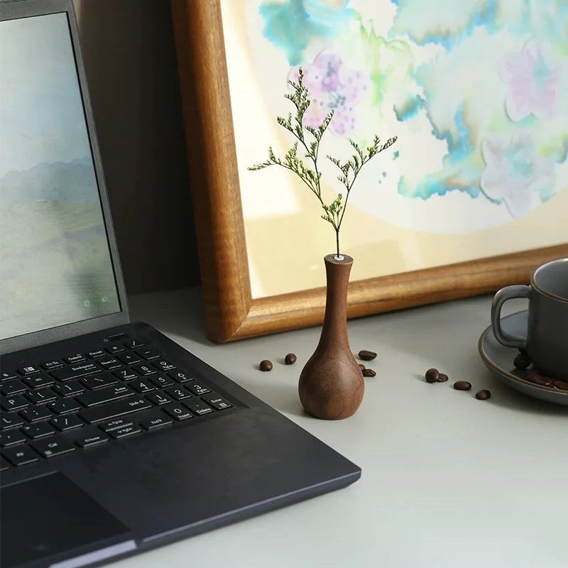 Black Walnut Solid Wood Flower Vase Creative Vase Chinese Style Desktop Simple Small Ornament Decorative Flower Vase Small Flowe