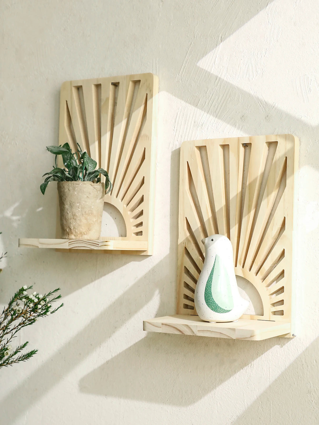 1pc Wooden Sunburst Wall Shelves, Boho Natural Style Display Rack for Plant, Ornaments, Entryway, Living Room Bedroom Home Decor