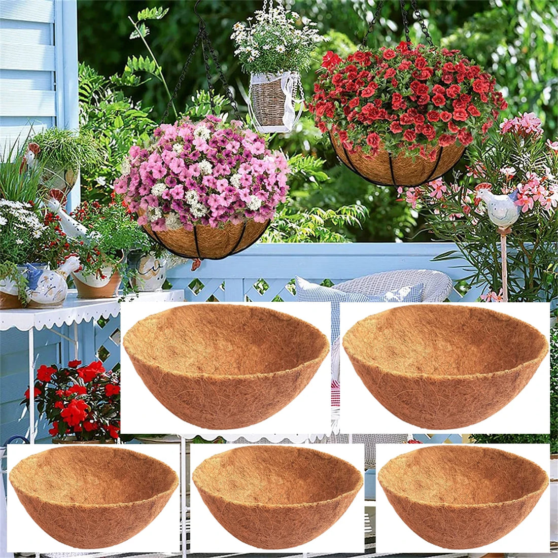 1Pc Breathable Round Coconut Palm Mat for Hanging Basket Natural Coconut Fiber Flower Planter Garden Balcony Decoration 8~16Inch