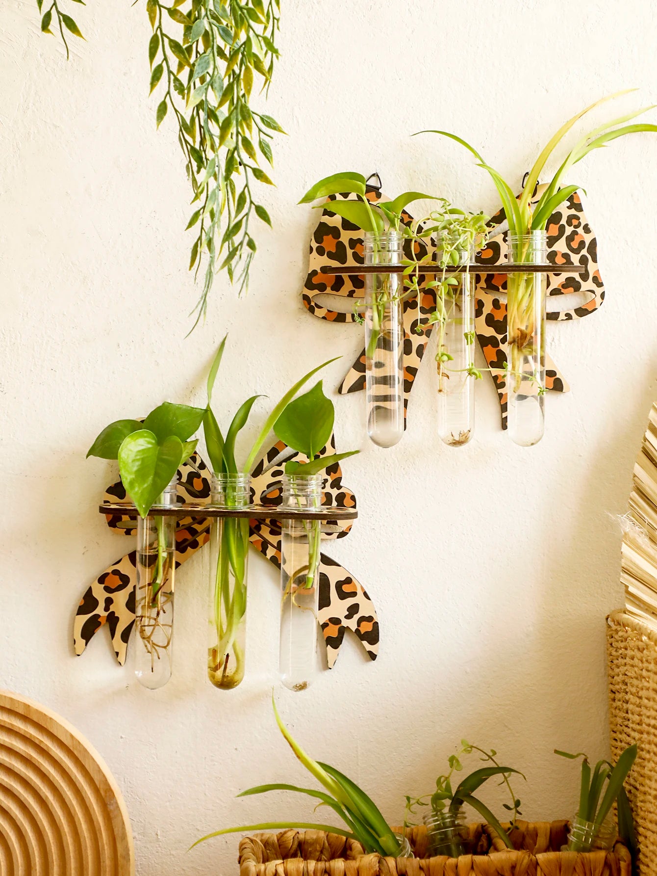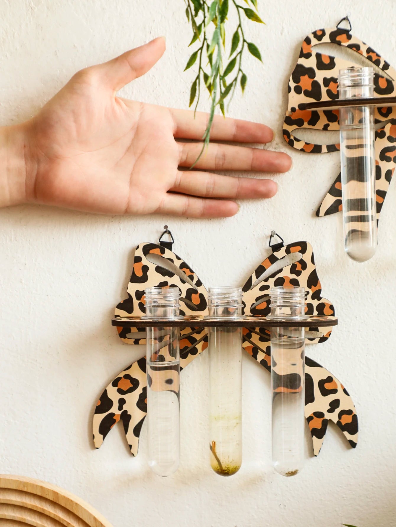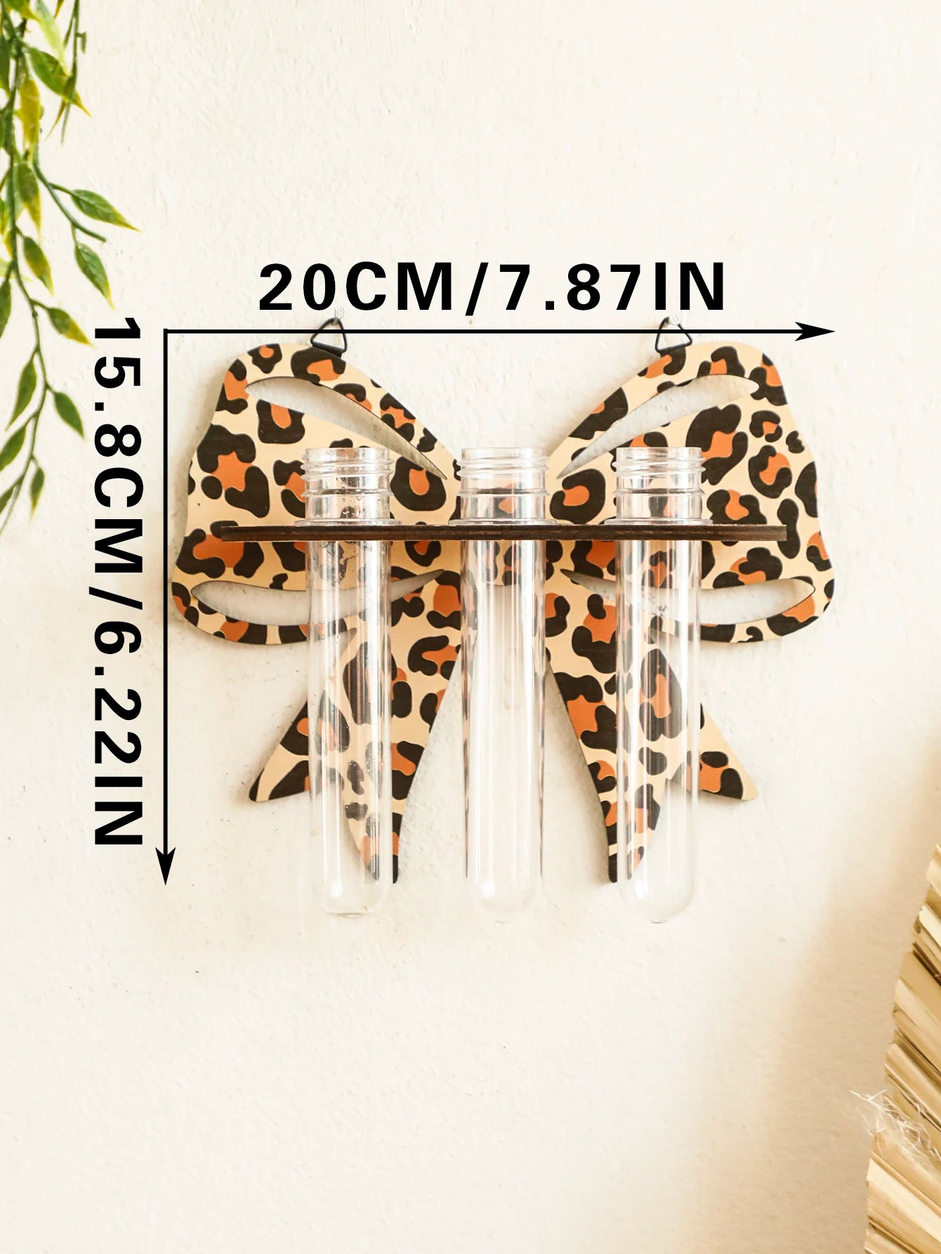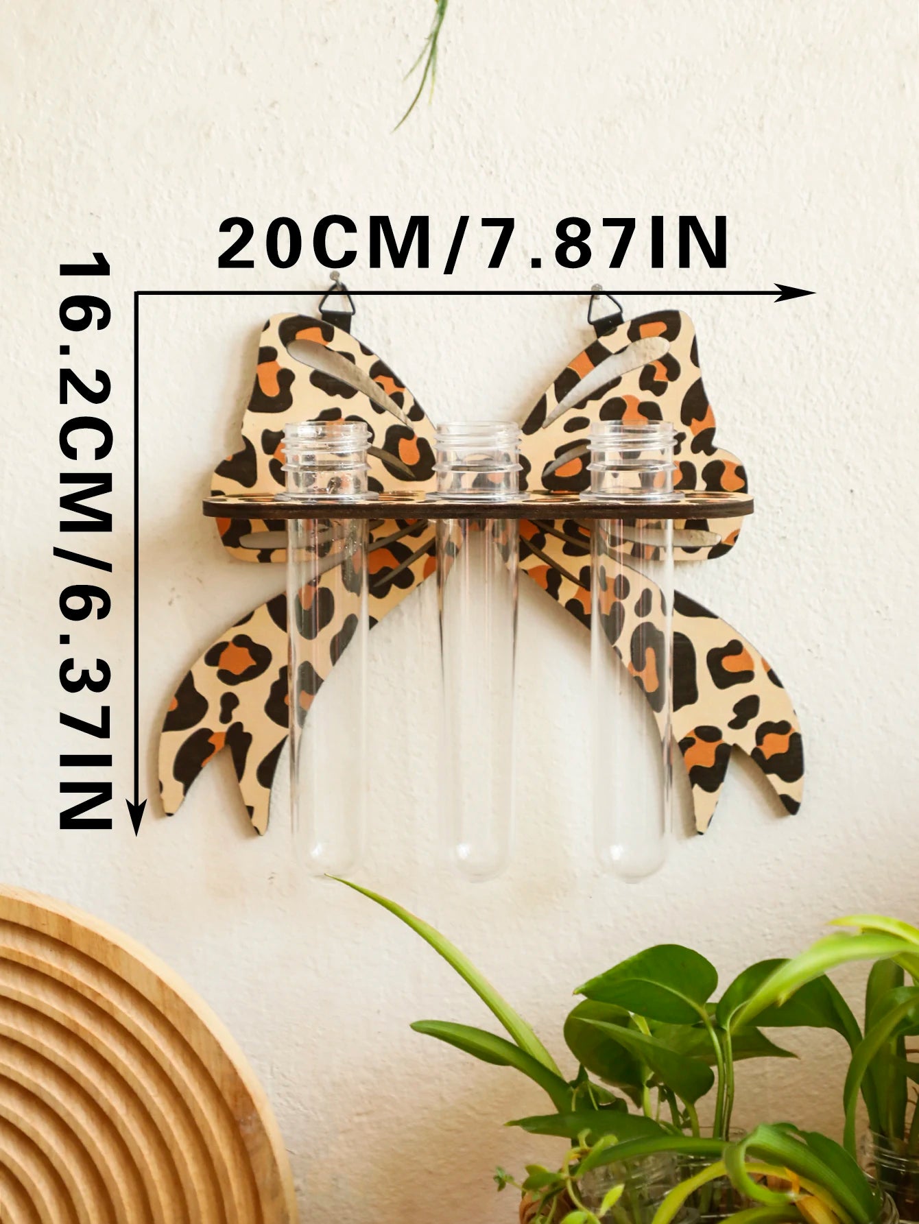 1pc Bow Leopard Wooden Wall Planter Indoor Hydroponic Plant Pot Wall Art Decor Vase Stand Home Garden Plants Propagation Station