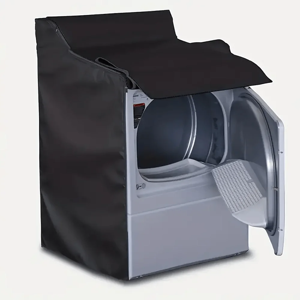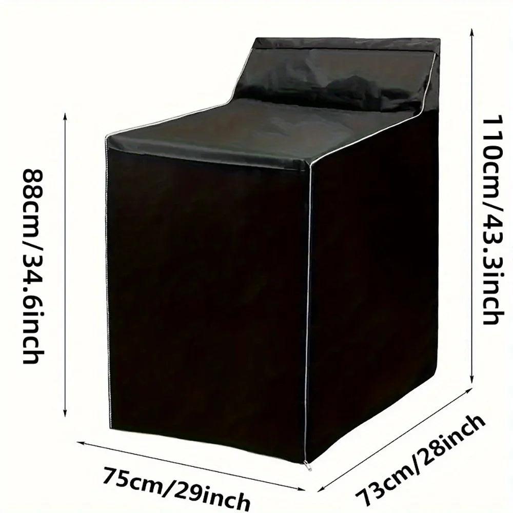 1pc Premium 210D Black Oxford Cloth Washing Machine Cover with Silver Trim for Outdoor Use - Durable and Long-Lasting