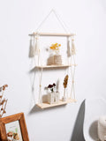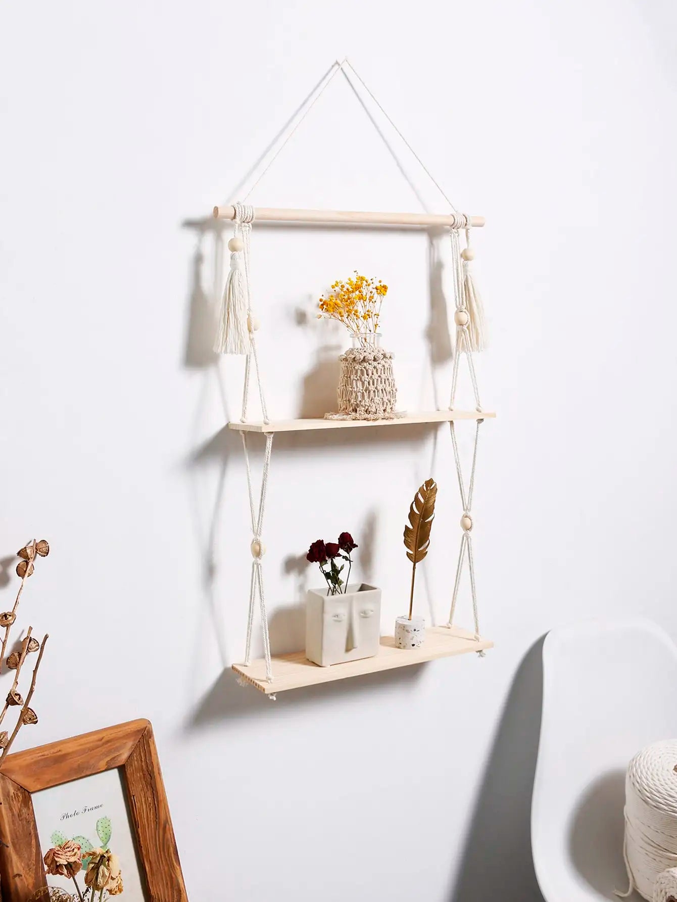 2-tier Floating Wall Shelf With Wooden Beads Home Decoration Boho Plant Flower Pot Tray Nordic Room Swing Display Shelf Art Gift