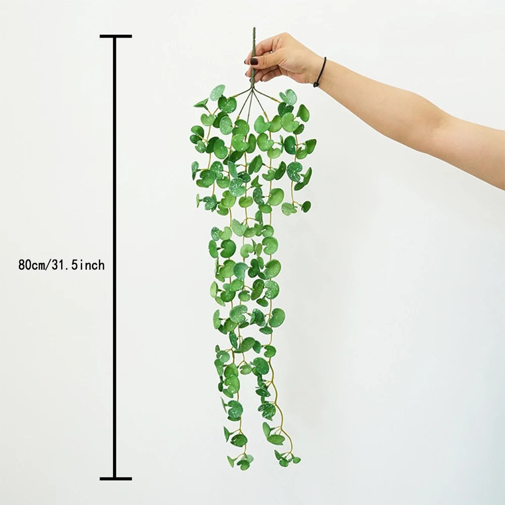 Artificial Plant Mini Bouquet Copper Coin Grass Soft Glue Fake Green Plants Wall Hanging for Home Office Garden Decoration