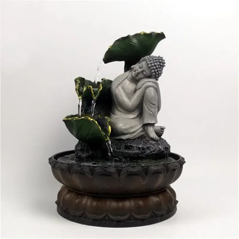 Hand Made Sitting Sleeping Buddha Statue Running Water Led Fountain Zen Living Room Feng Shui Waterscape Ornaments Home Crafts